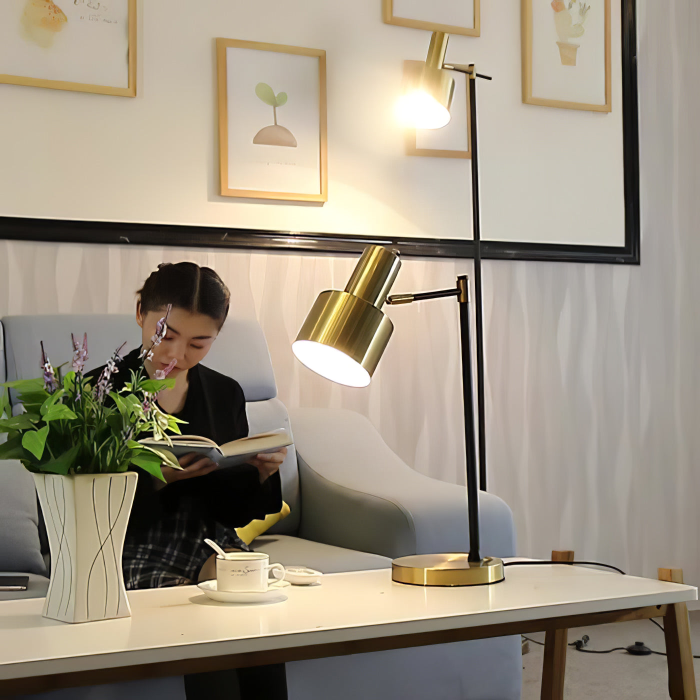 Illuminate your living space with this simple yet bold table lamp. It features a beautiful polished gold finish with black body. The perfect accent piece for your office. bedroom. foyer or living room.