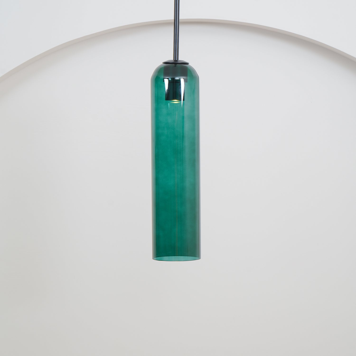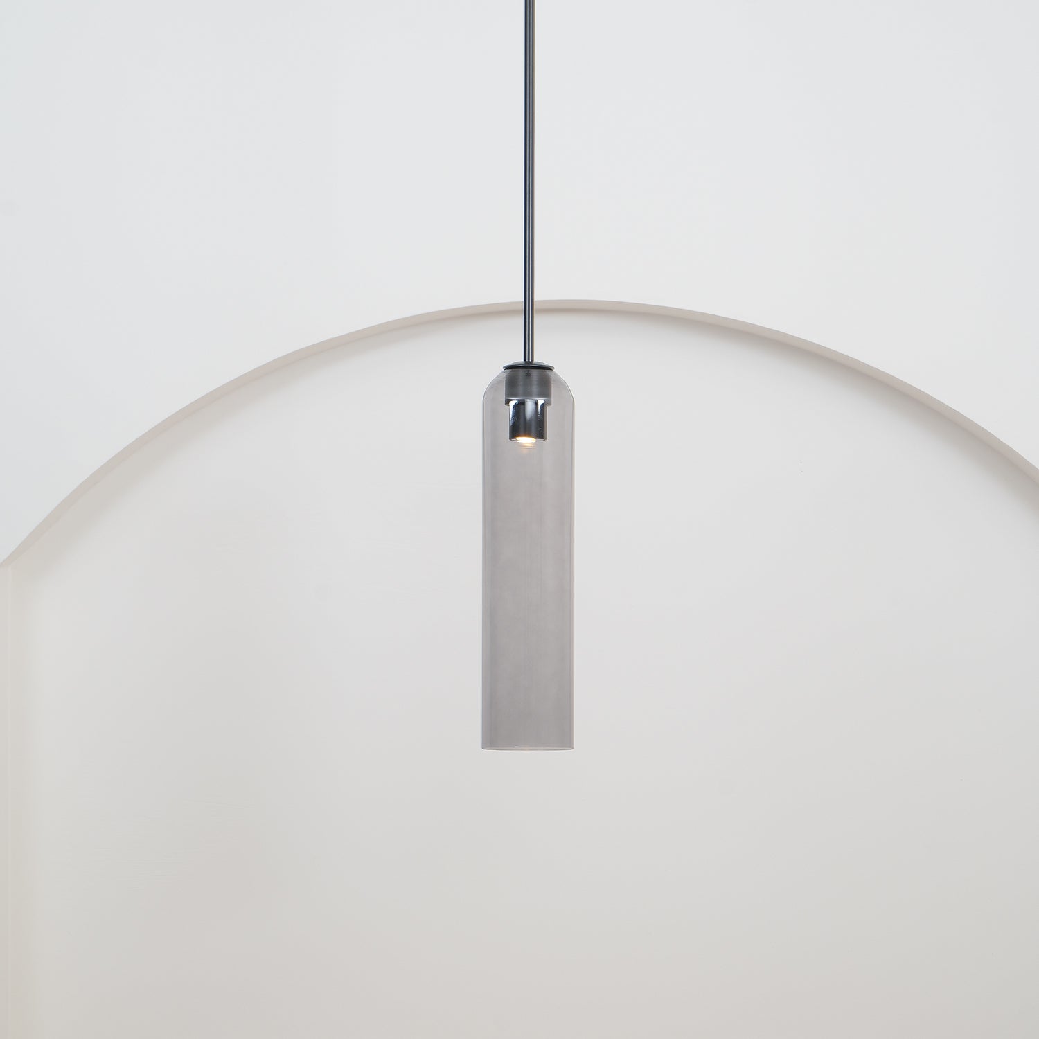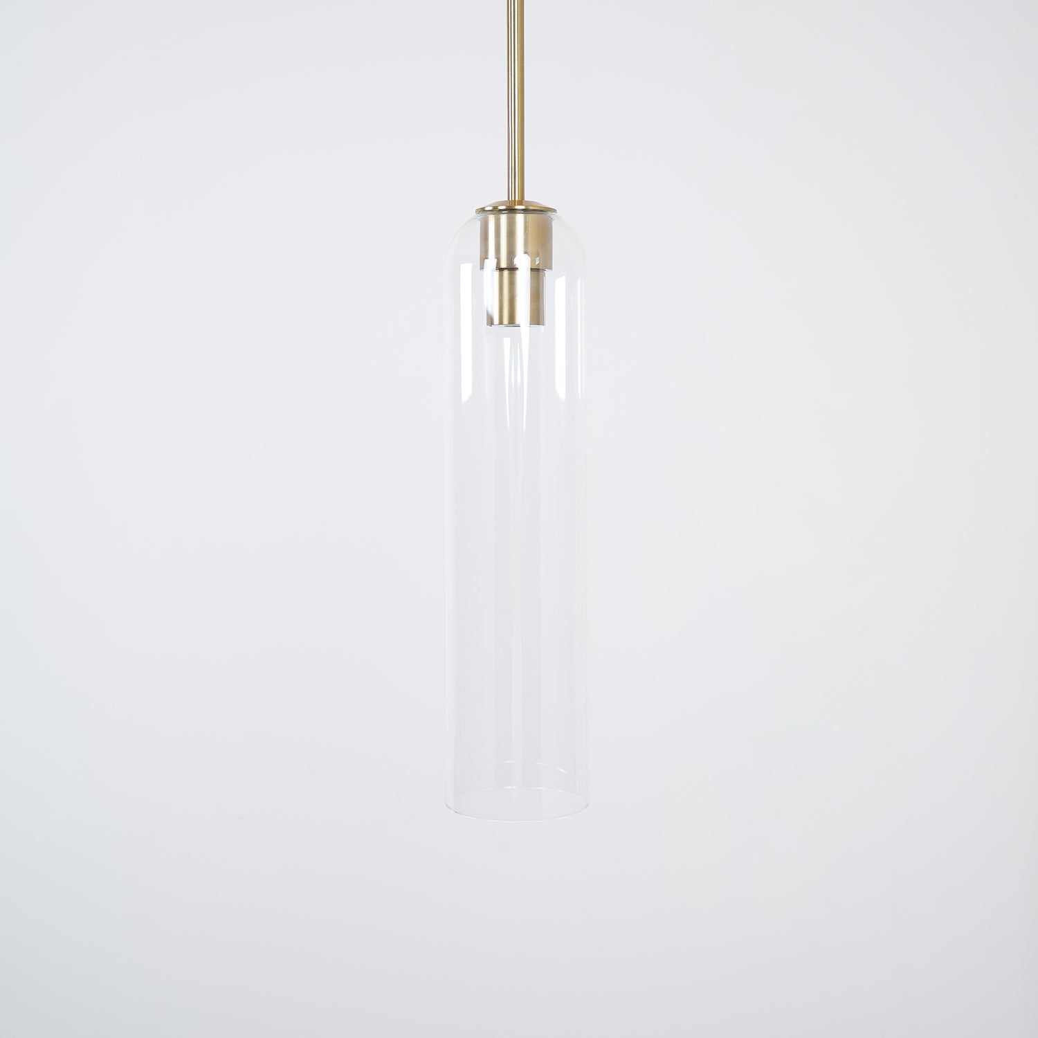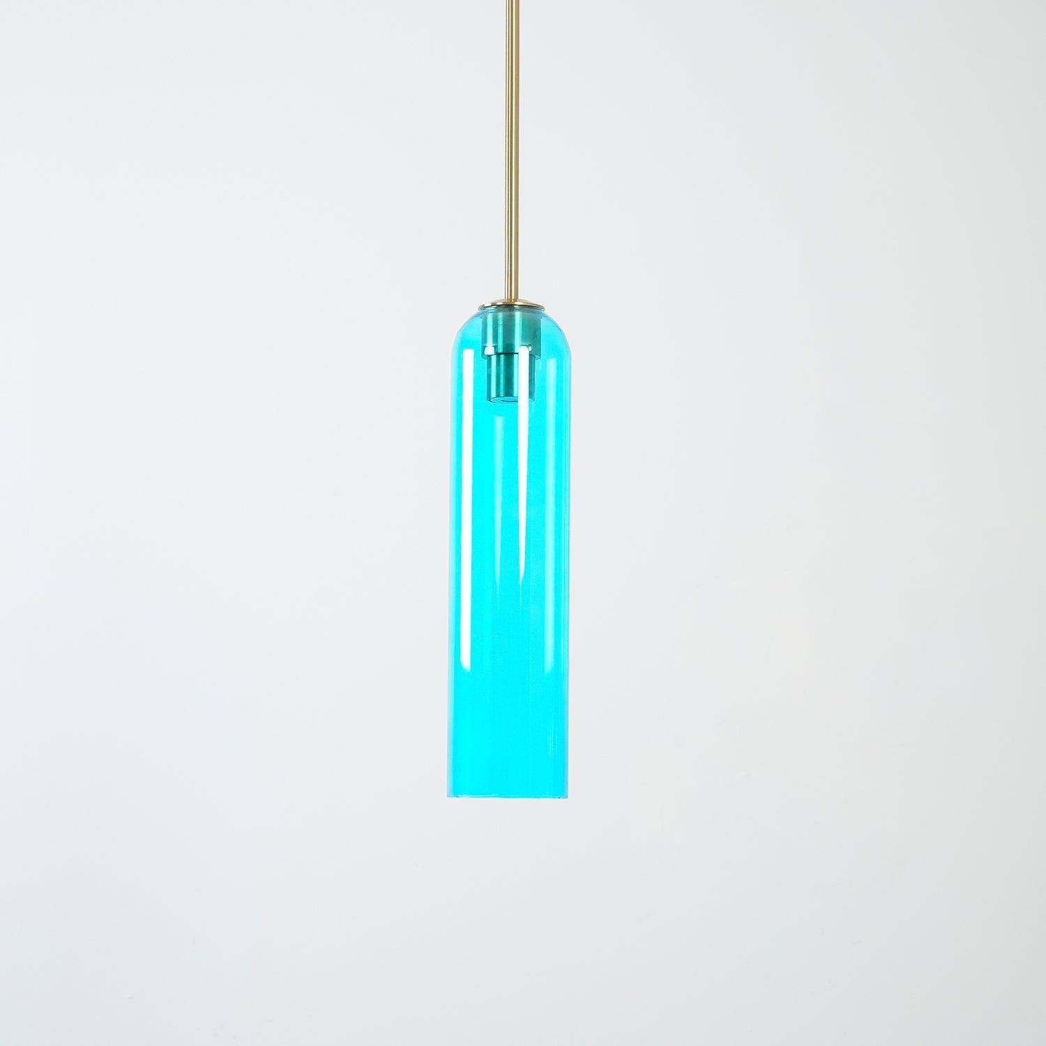 Glass pendant lamp is a collection of refined lighting informed by glamorous design cues of a bygone era and defined by its soaring cylindrical form. Each mouth-blown piece is tirelessly perfected and uniquely individual. Born as an acclaimed Wall Sconce.