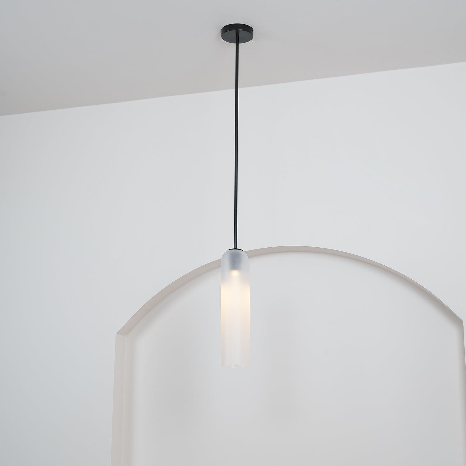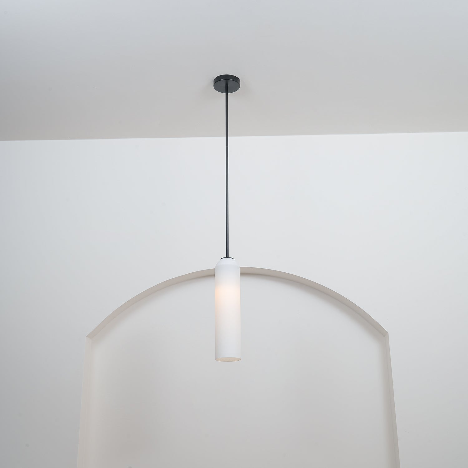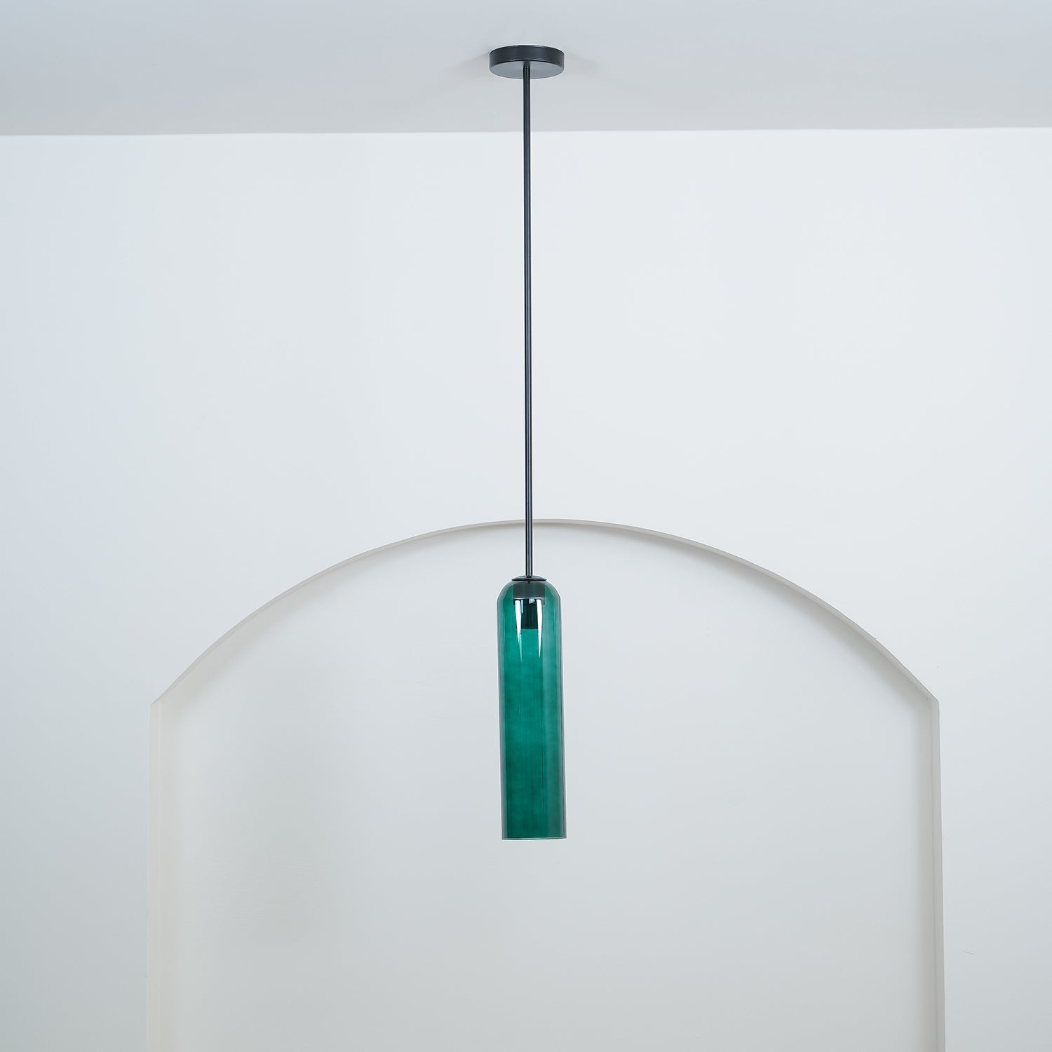 Glass pendant lamp is a collection of refined lighting informed by glamorous design cues of a bygone era and defined by its soaring cylindrical form. Each mouth-blown piece is tirelessly perfected and uniquely individual. Born as an acclaimed Wall Sconce.
