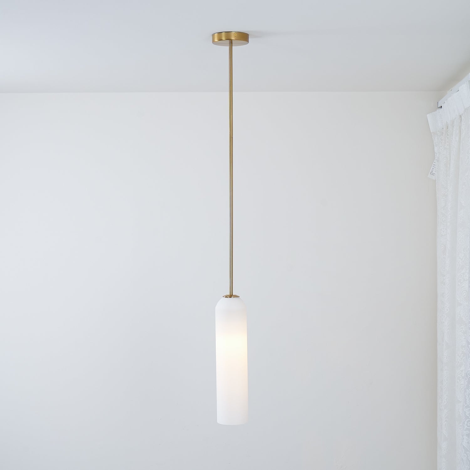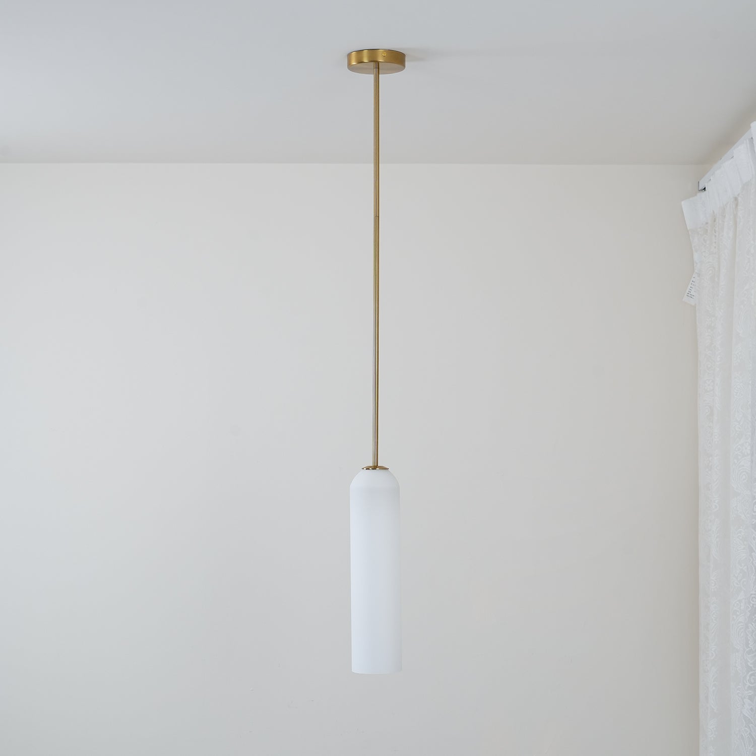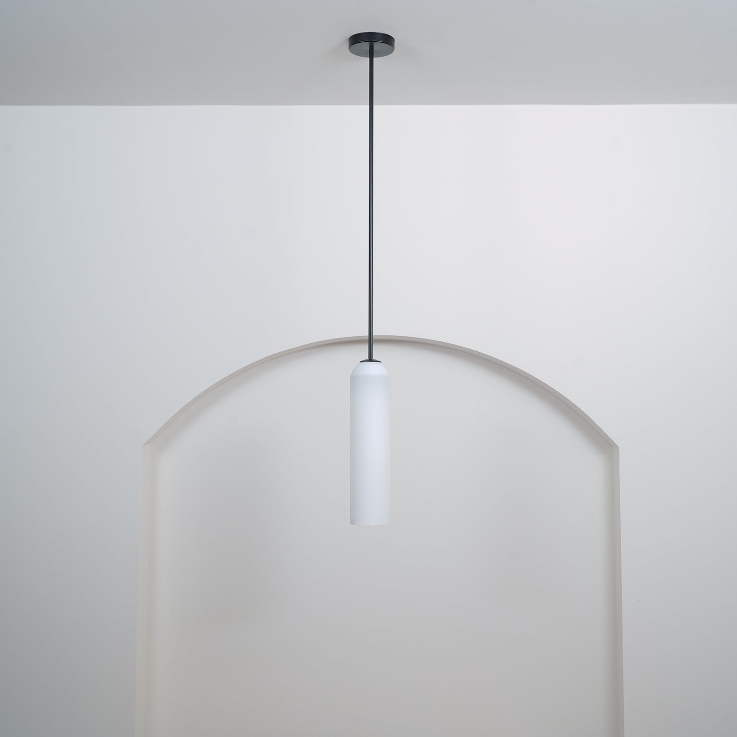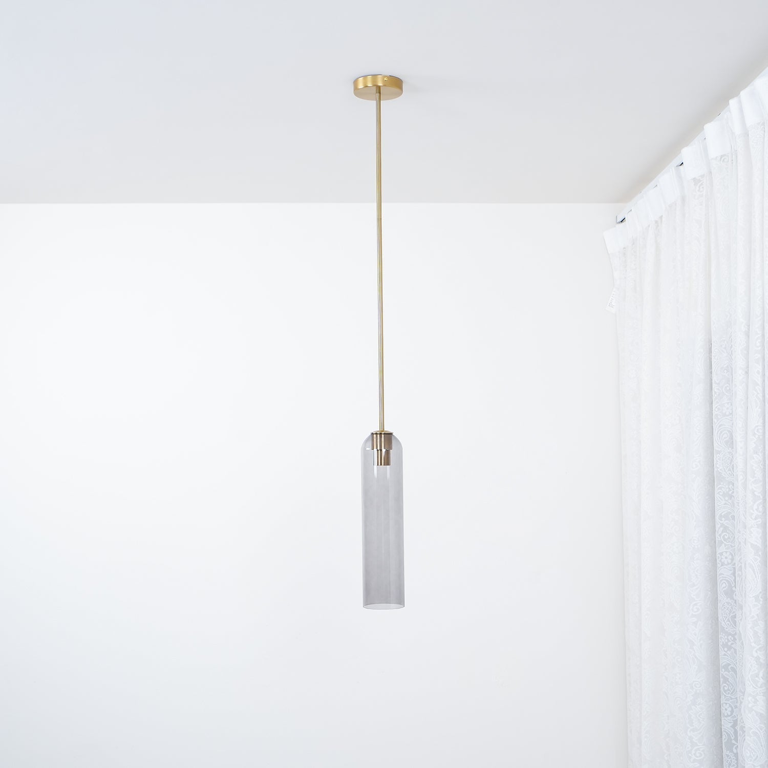 Glass pendant lamp is a collection of refined lighting informed by glamorous design cues of a bygone era and defined by its soaring cylindrical form. Each mouth-blown piece is tirelessly perfected and uniquely individual. Born as an acclaimed Wall Sconce.