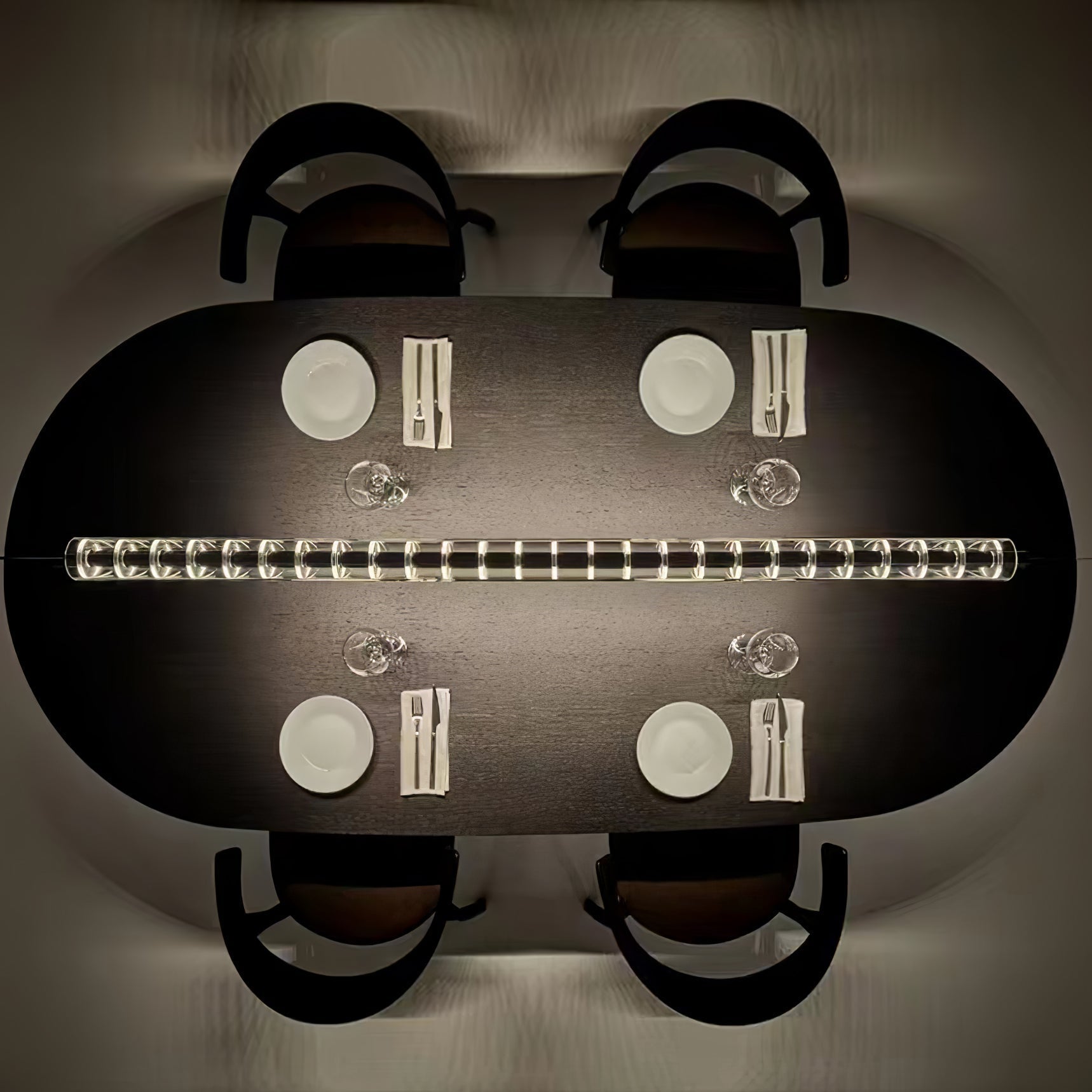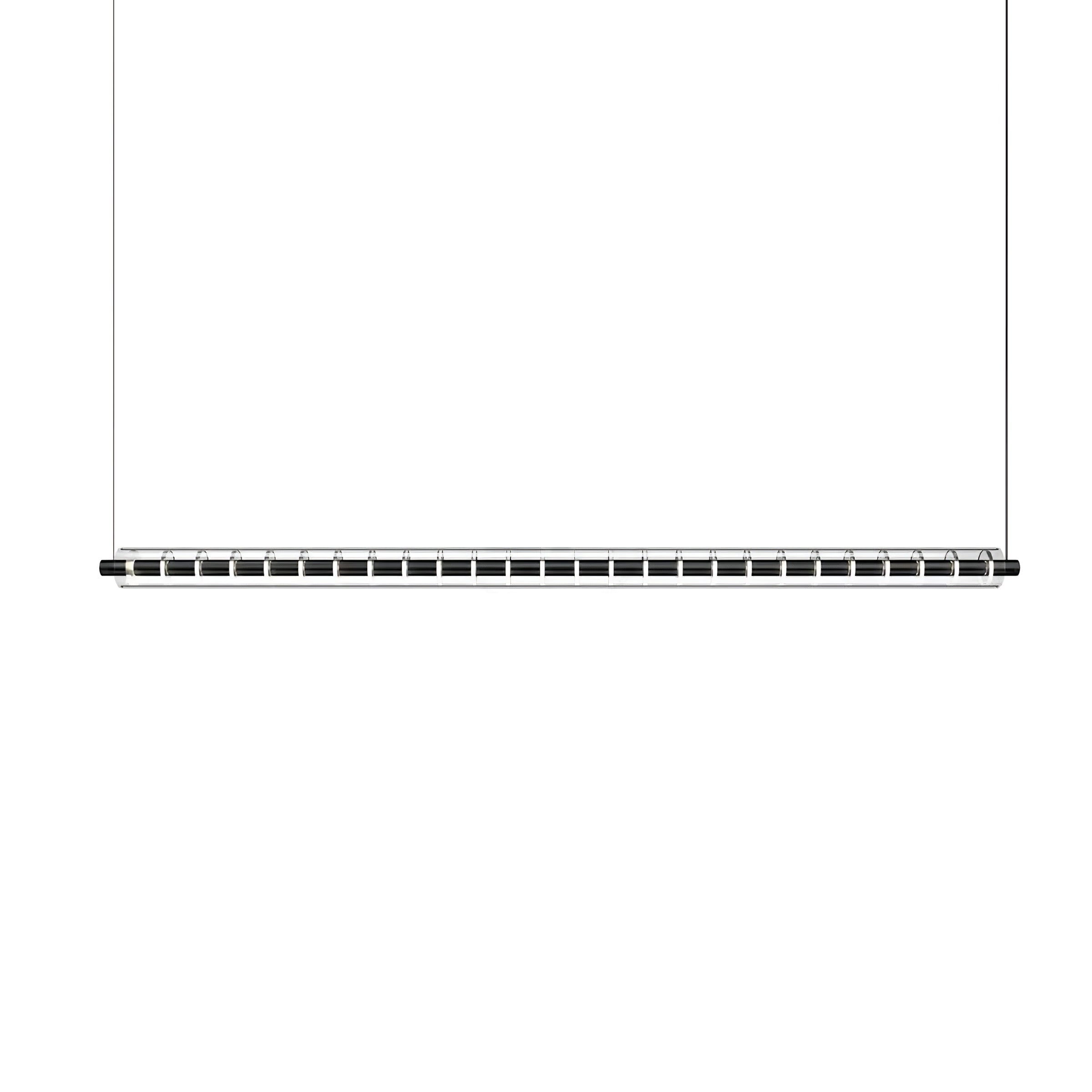 Daring and fanciful. Loop appeals to industrial lyricism with a design inspired by electrical insulators. The protagonist of the decoration. its body is a sequence of light disks with an aluminium interior. It's adorned by a suspended glass cylinder that acts as a fastflowing. controlled source of projected light.