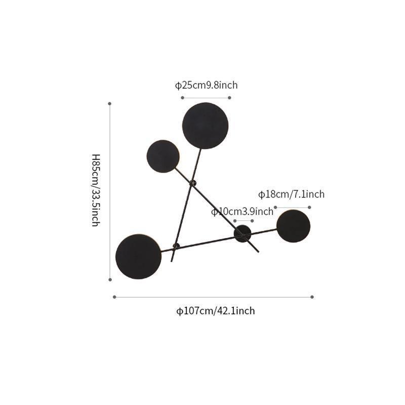 Iride is a sculpture made of lines and circles. with a geometric shape of the strong decorative impact that reminds you of Kandinsky's works. The disc creates a luminous halo similar to several eclipses. The intertwining structure is made from three discs and three bars of black metal and one disc and bar in titanium finish.