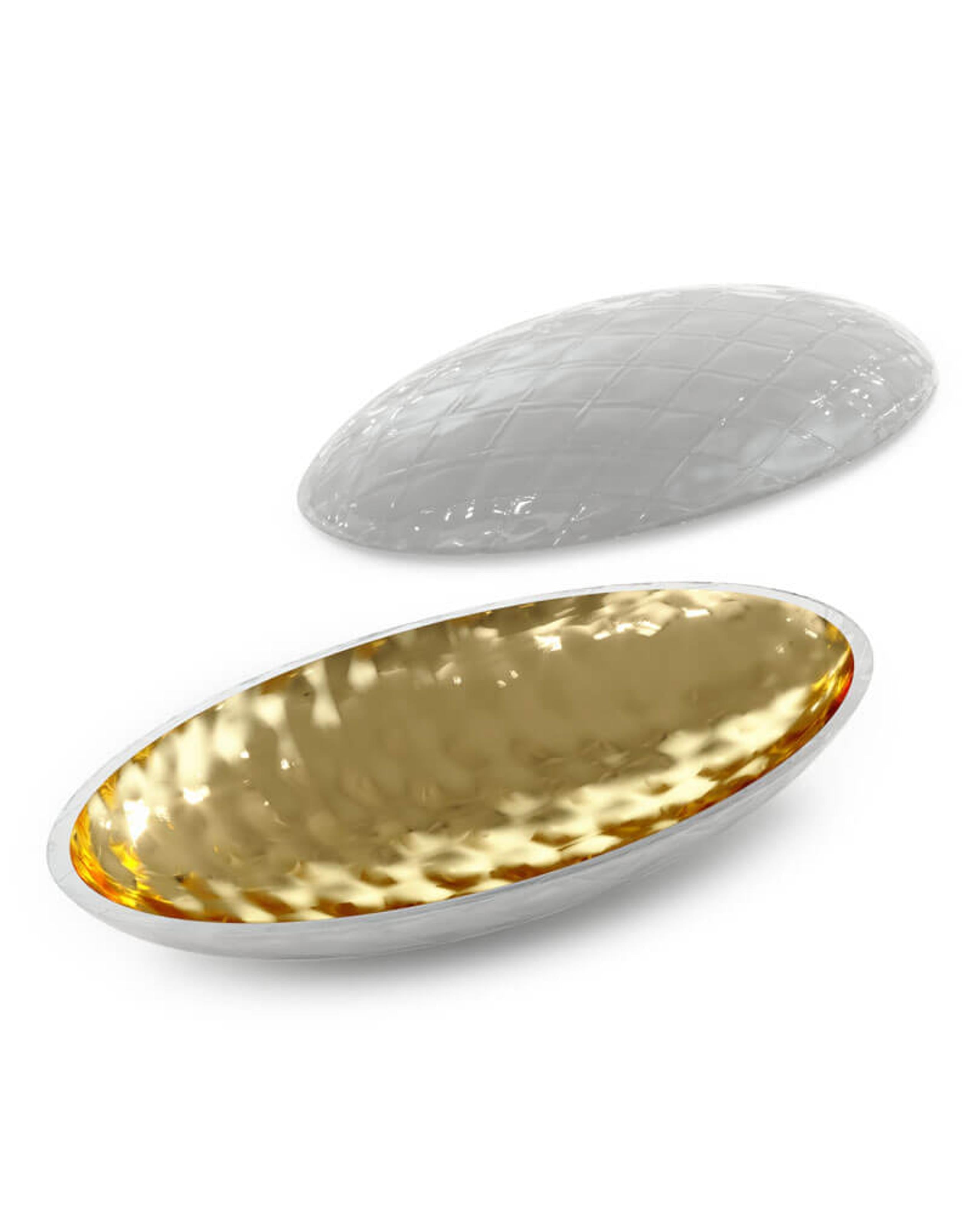 The Lustre Bowl Collection embodies the essence of refined simplicity. transforming sleek design into a captivating light display. Each piece begins with a hand-blown crystal glass bowl. artfully contrasted by nano-coated metal gilding on one side and a subtle color finish on the other. The suspended. organic shapes create a fluid wave of light. bringing a touch of elegance and modernity to any space. With its lustrous surfaces and contemporary design. the Lustre Bowl Collection serves as a stunning centerpiece that adds both style and radiance to your interior.