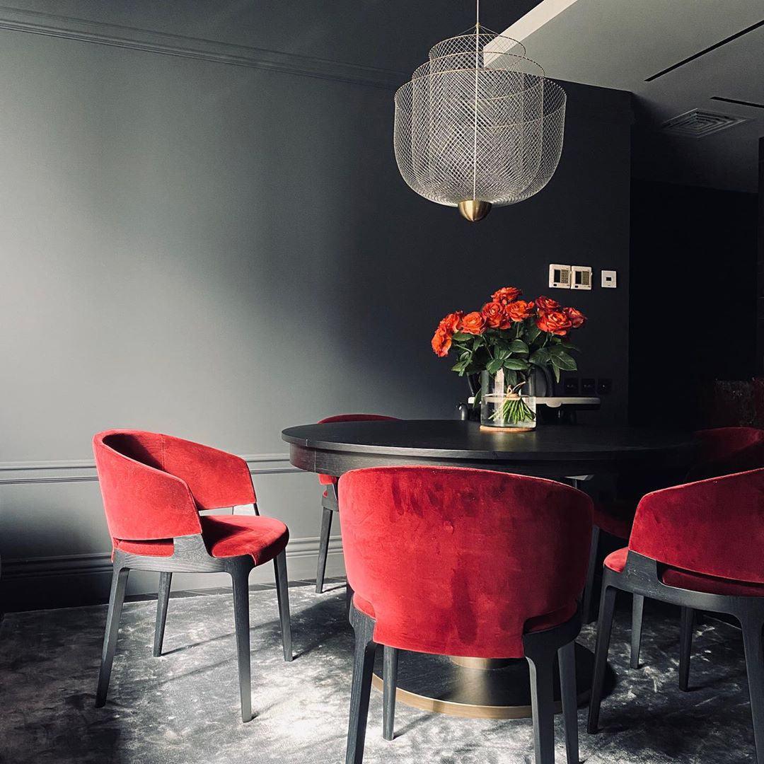 The surprising design. with the integrated LED light source that shines upwards. provides exceptional light and a play of shadows on the ceiling. The ingeniously layered steel frame shines gracefully through the LED light that with 2700 Kelvin gives a very warm white light (maximum 30 Watt). The chandelier-like lamp has a diameter of 60 centimeters and is 60 centimeters high. The transparent cable on which the lamp hangs has a maximum length of two meters.