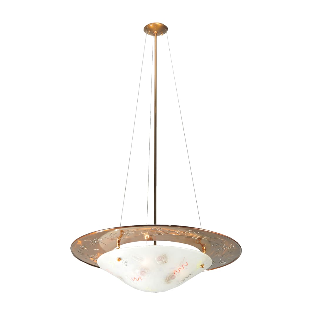 Bring radiant class with the 31" Width Supernova Fused Glass Inverted Pendant by Meyda Tiffany. Show off your personality with this classy pendant featuring 100 watts per bulb and a bowl shaped shade.