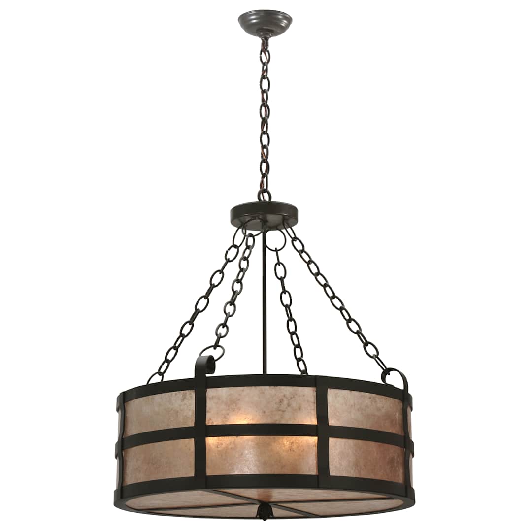 Pristine and bold. the 26.25" Width Truffle Inverted Panel by Meyda Tiffany is a perfect way to dress up your room. Dazzle your friends and guests with this lovely pendant utilizing 100 watts per bulb and a drum shaped shade.