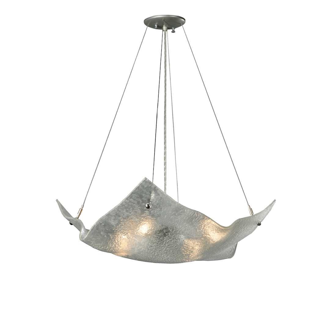 Create captivating simplicity in your home with the 26" Width Lunar Crinkle Fused Glass Inverted Pendant by Meyda Tiffany. Meyda Tiffany is one of the few companies that still employs artisans capable of creating this classy pendant featuring 100 watts per bulb.