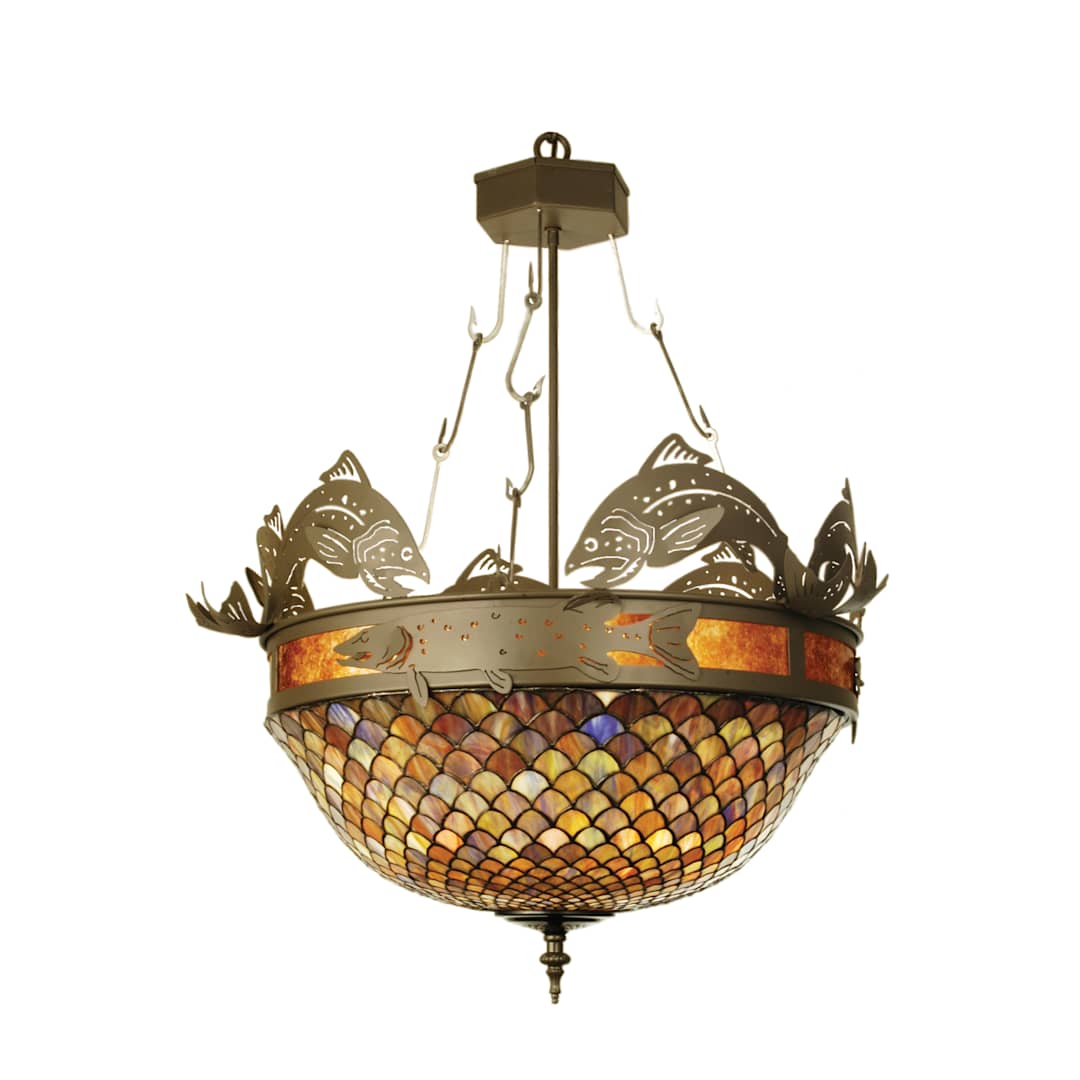 Endearing and dazzling. the 30" Width Catch Of The Day Fishscale Inverted Pendant by Meyda Tiffany is a wonderful selection. Do something nice for him / her with this lovely pendant utilizing bowl shaped shades.