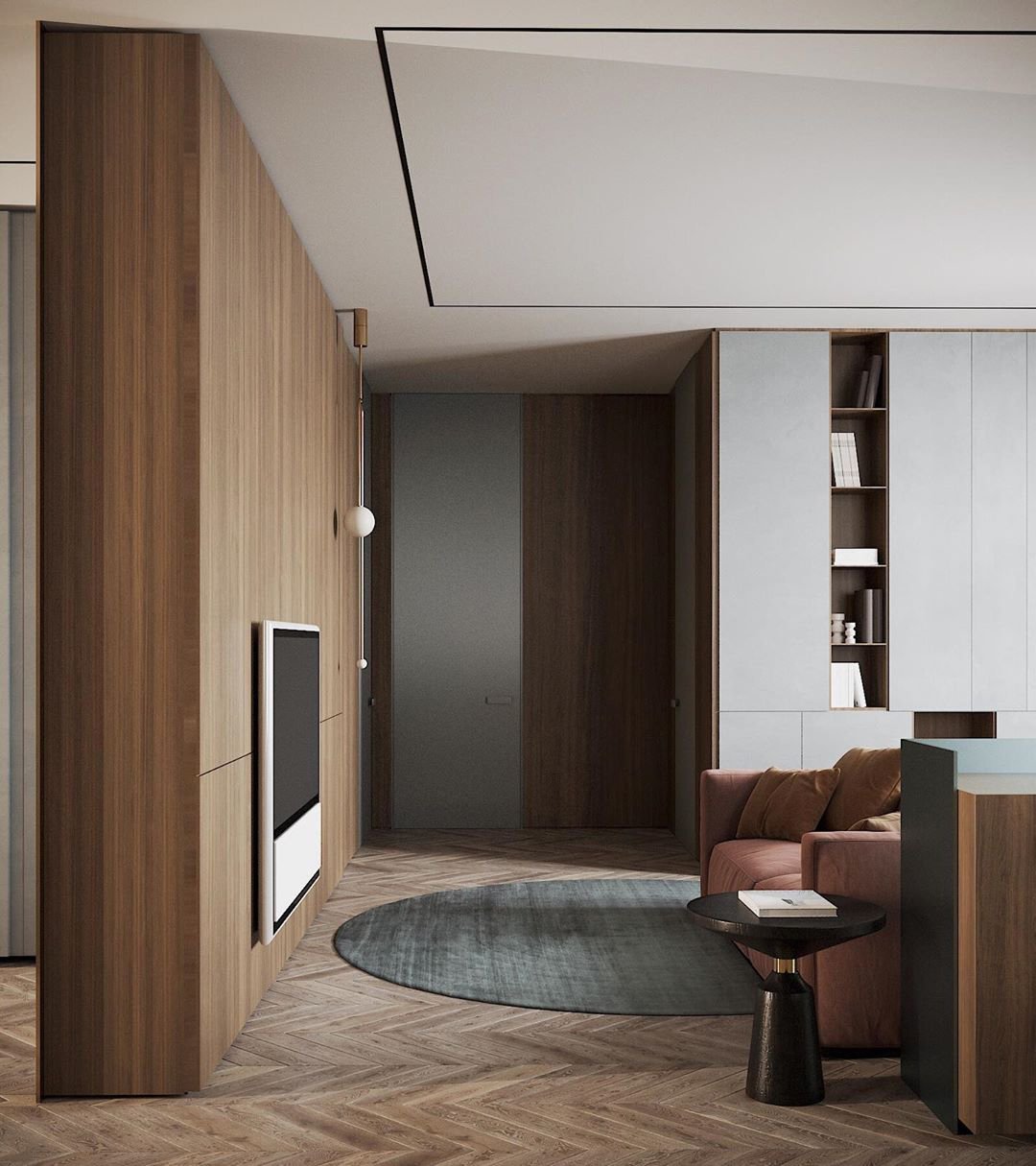 This lighting reveals a minimalist design with very graphic and uncluttered forms. These lines in the air have several sources of warm light. with diffusers in opaline-blown glass.