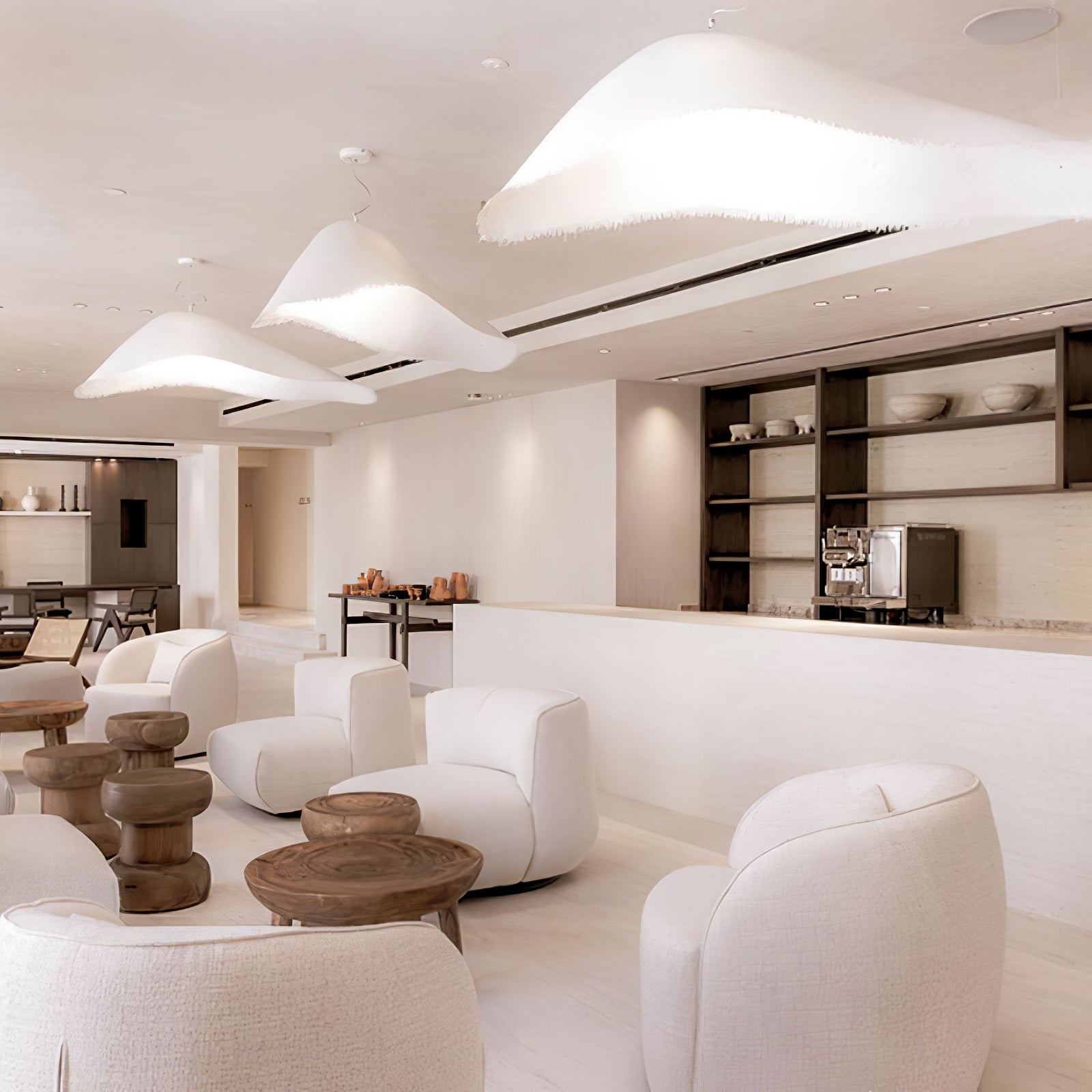 Illuminate your space with the Moby Dick Pendant Light. inspired by the famed literary work. Its ethereal glass fiber face emits a soulful glow. while its sleek lines offer elegant and inspired lighting. Experience the history of lighting with this unique piece.