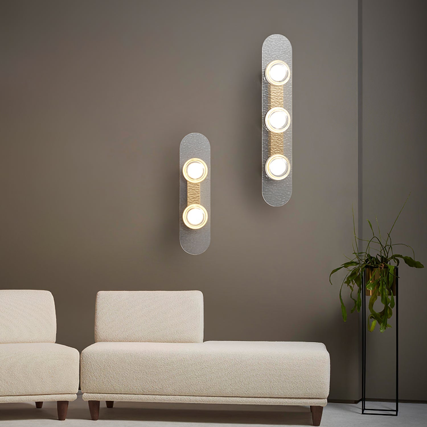 Introducing the Modulo Gold Wall Light from Vakkerlight - a stunning combination of form and function. With its modular design. this sconce offers versatile lighting options. while the handcrafted clear glass disks and brass frames create an elegant and geometric light display. Elevate any space with this artistic and detailed lighting sculpture.