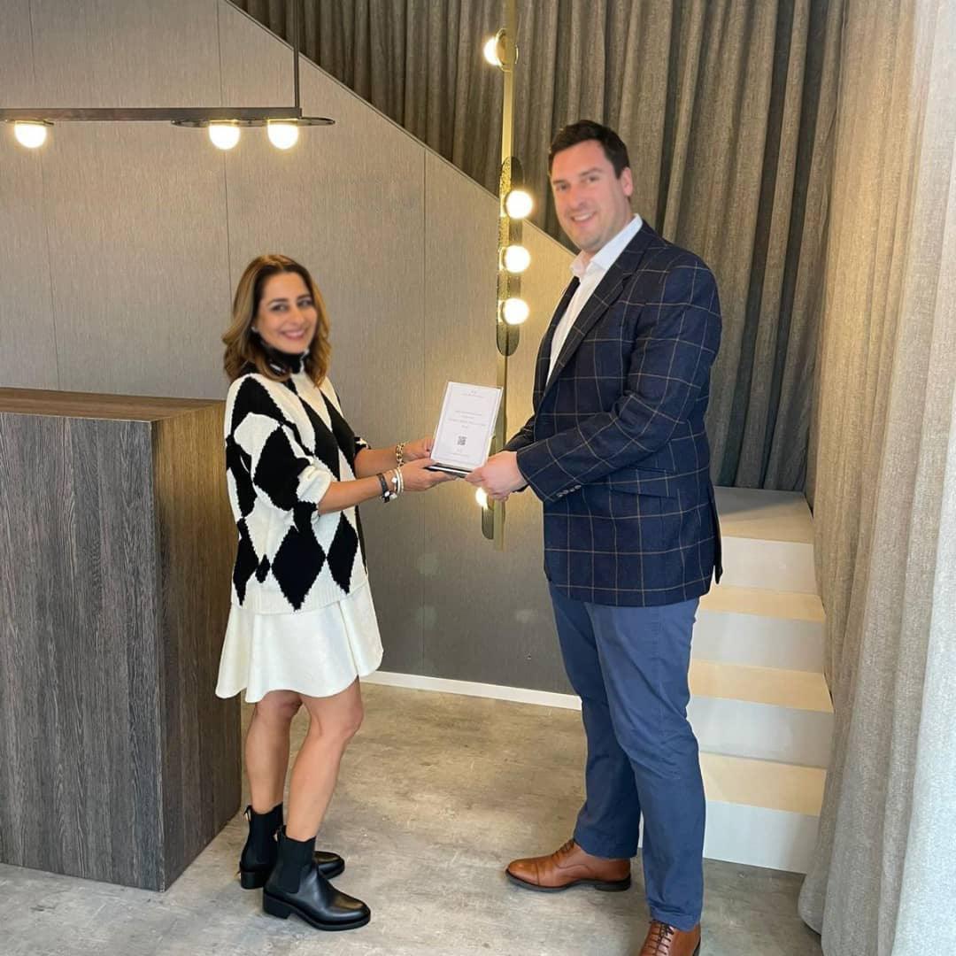 The modulo is a collection of chandelier and wall lights distinguished by its modular form. arranged in linear configurations creating versatile lighting sculptures. Combining functionality with artisanal skill. the design focuses on geometric forms. connected in compositions of modules. The glowing domes are spaced in a linear pattern. allowing the light to reflect along the transparent. elongated glass disc and metal frame.