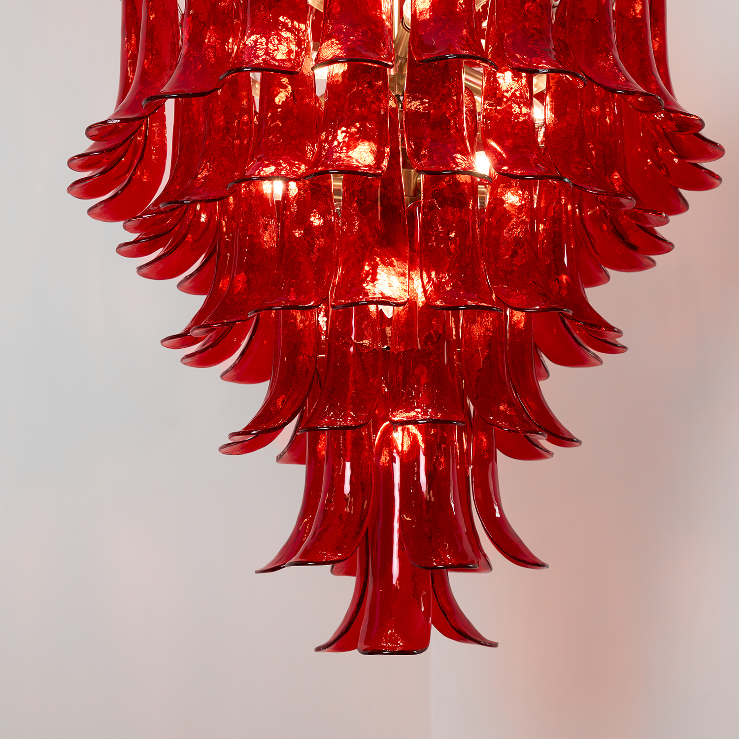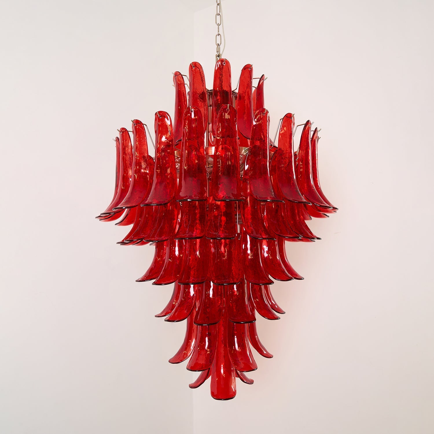 The Vakkerlight Murano Crimson Cascade Chandelier is a captivating blend of Italian craftsmanship and bold design. Inspired by traditional Murano glass artistry. this chandelier features vibrant red. hand-blown glass pieces cascading in a layered arrangement. creating a stunning visual impact. Each glass element is shaped to reflect light beautifully. casting a rich. warm glow throughout the room. Perfect for making a dramatic statement in dining rooms. entryways. or luxurious living spaces. this chandelier brings a touch of Murano elegance combined with Vakkerlight's signature modern touch. Add a vibrant focal point to your space with the exquisite Murano Crimson Cascade Chandelier.