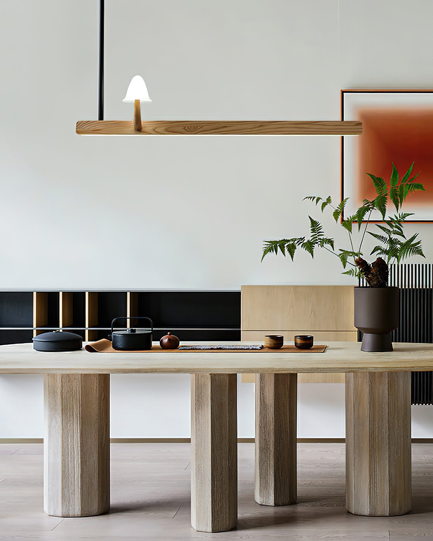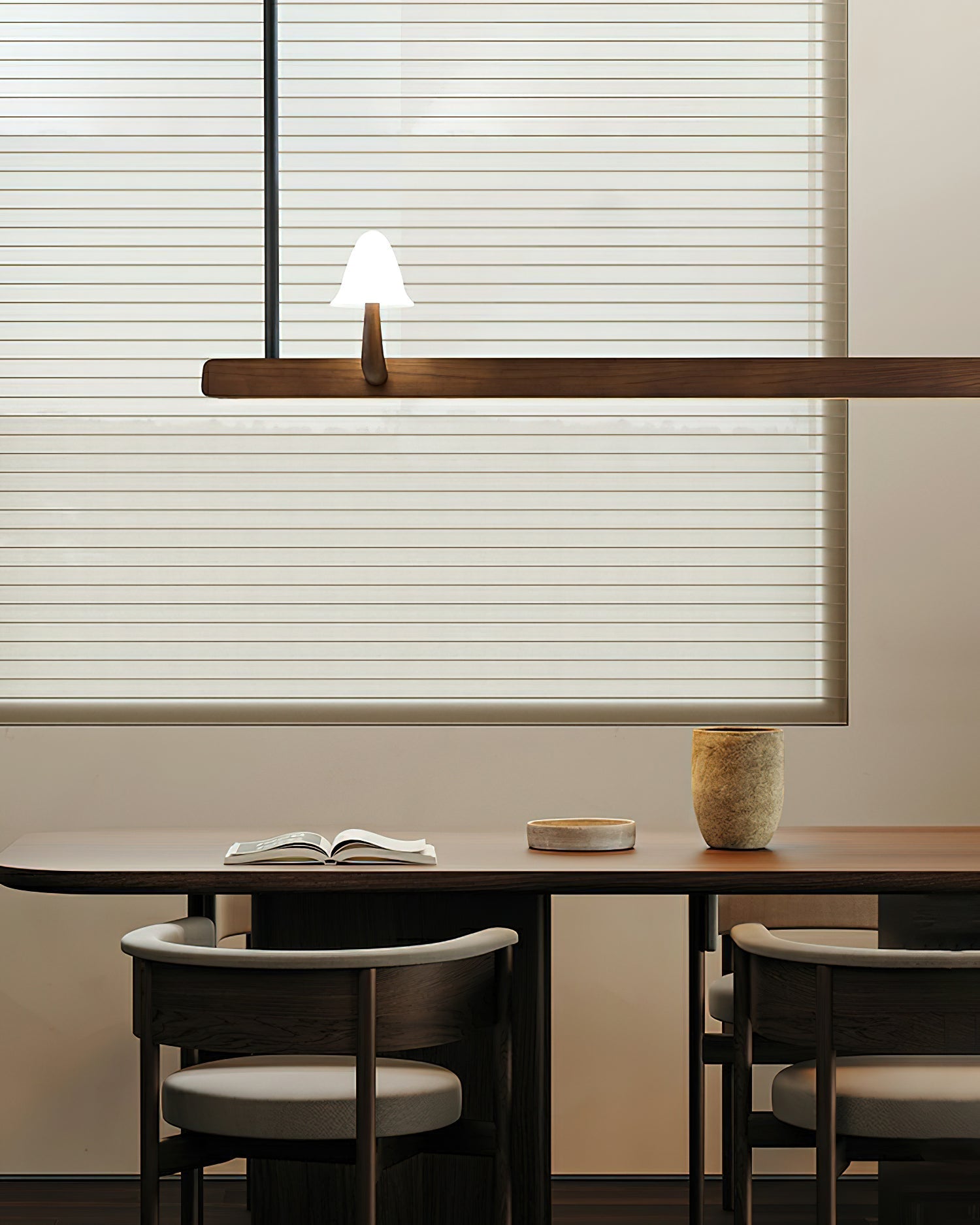 The Mushroom Beam Chandelier seamlessly combines natural elements with minimalist design. The wooden beam provides a sleek base. while the small mushroom-shaped lampshade adds a touch of whimsy. With a soft white glow. this lamp creates a warm and cozy atmosphere. making it perfect for any space in your home. Its unique blend of nature-inspired and modern design adds a playful personality to any room.