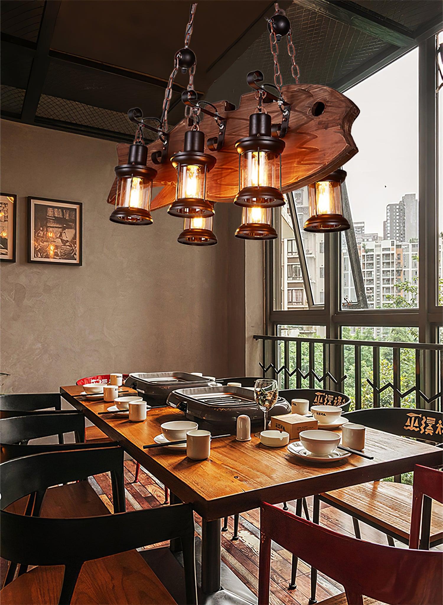 This Nautical Industrial Style Wooden Chandelier will add a touch of rustic charm to any space. The unique combination of classic American farmhouse style and sophisticated nautical industrial design creates a timeless look. Perfect for adding a statement piece to any room.