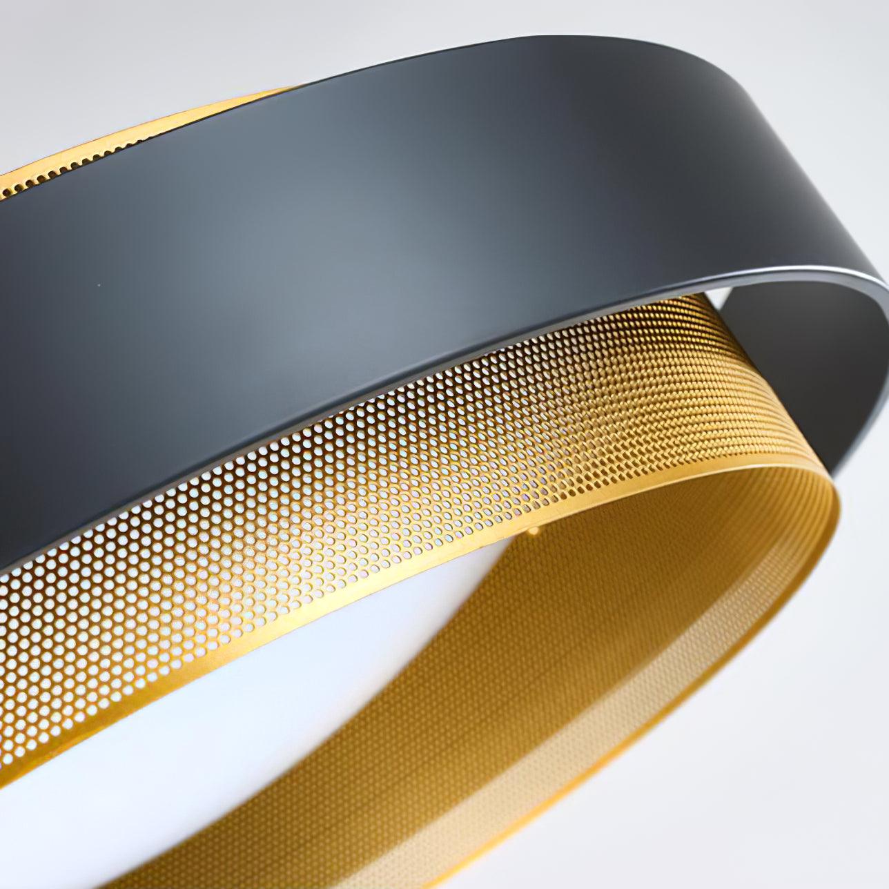 This iron mid-century-inspired one-light vintage gold-finished is the perfect light to hang over your dining table. The dark Black outer ring adds contrast and dimensionality to the simple elegant design.