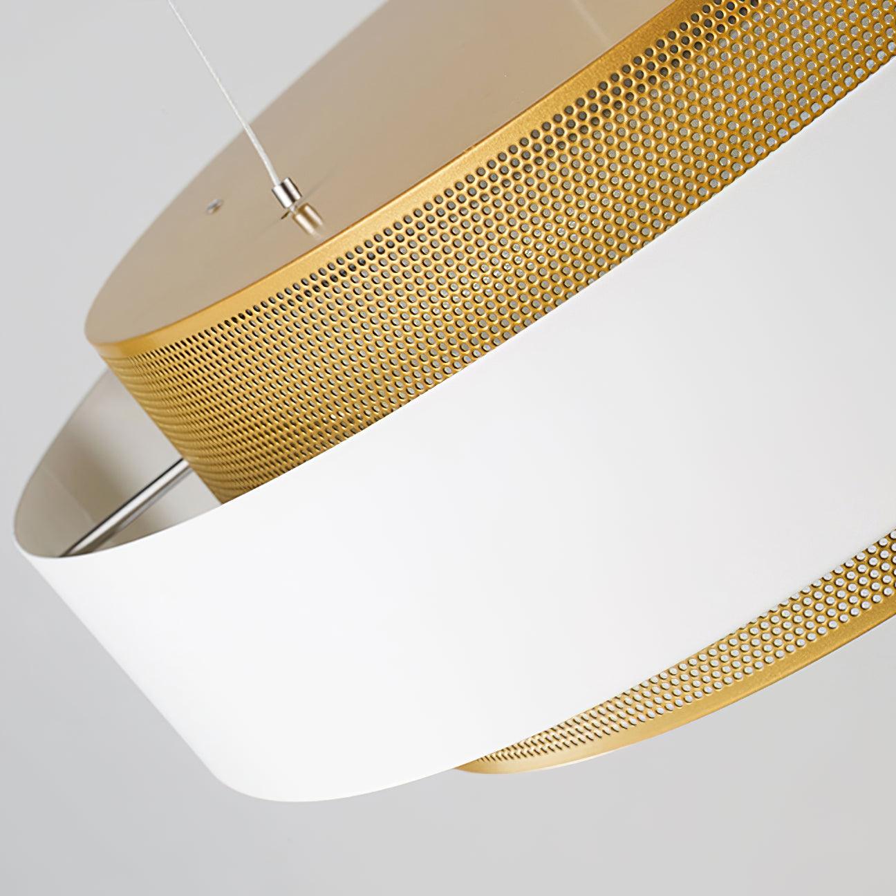 This iron mid-century-inspired one-light vintage gold-finished pendant is the perfect light to hang over your dining table. The dark Black outer ring adds contrast and dimensionality to the simple elegant design.