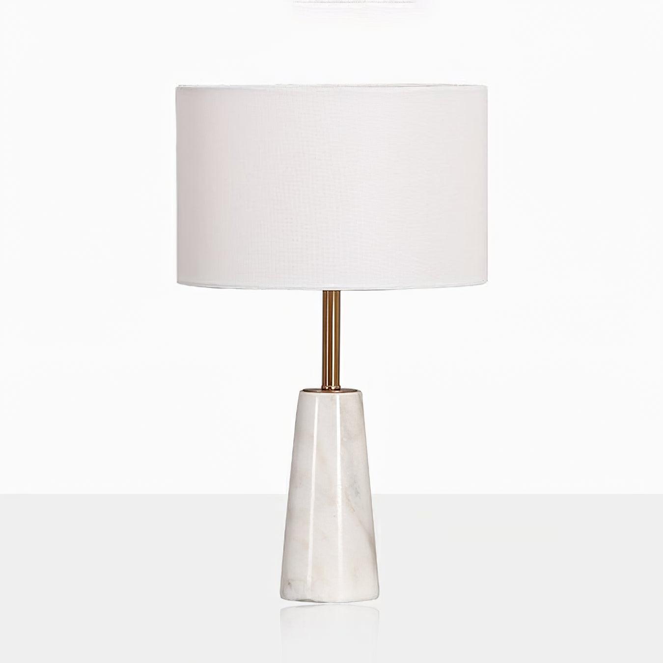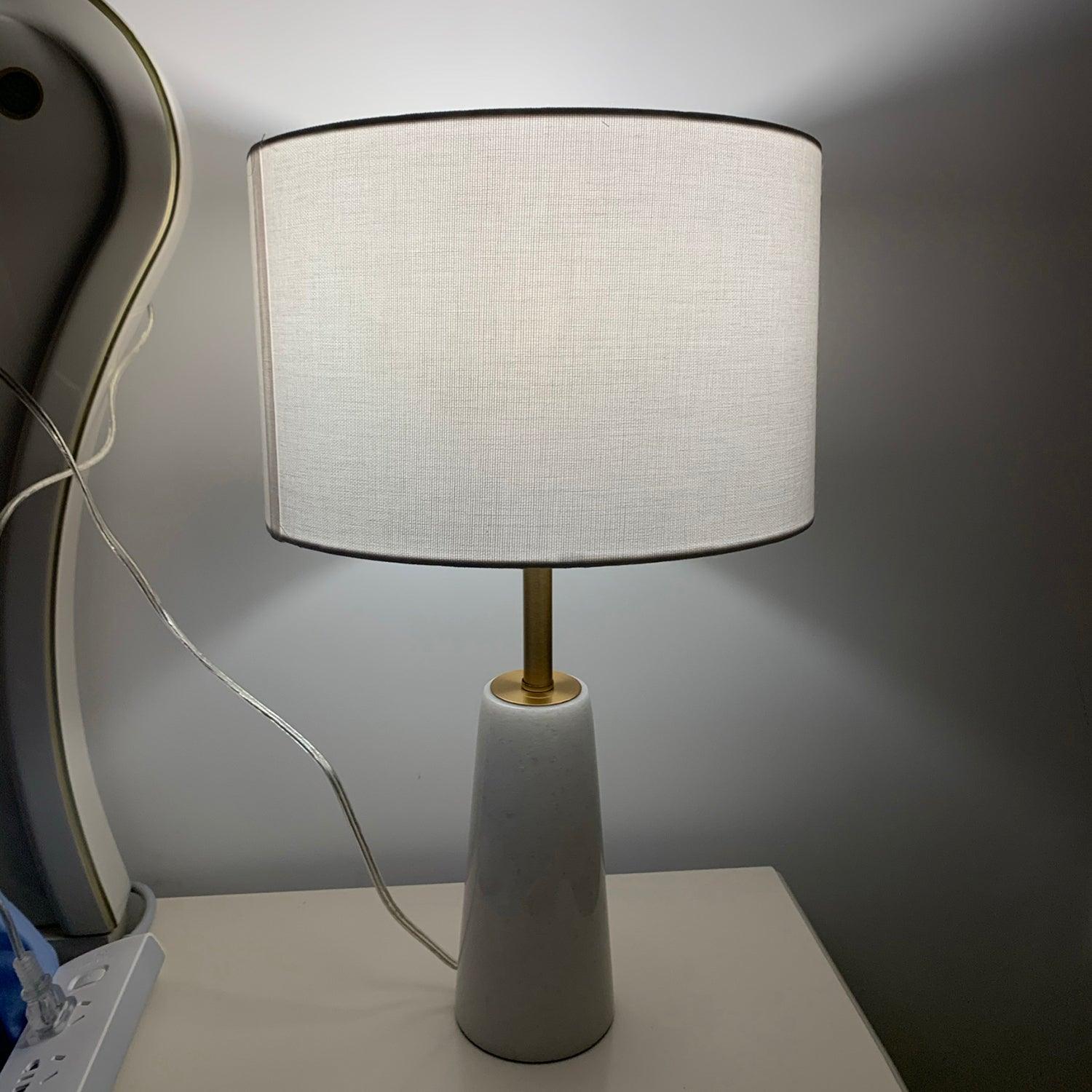 Brimming with elegance. this table lamp solves lighting woes with a hit of style. The lamp's sophisticated design features a white marble base. metal stem. drum shade. and sleek silhouette. for an eye-catching feature in any room.