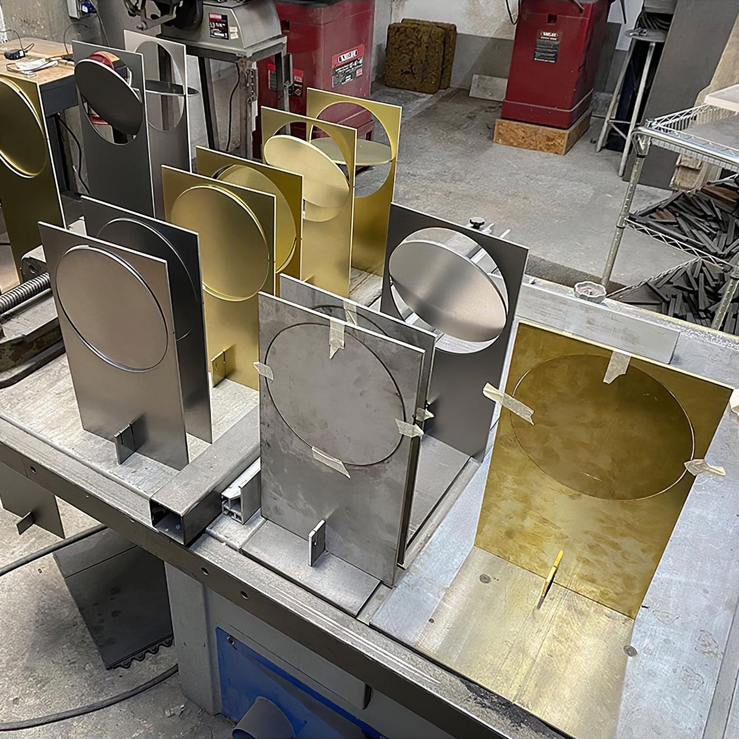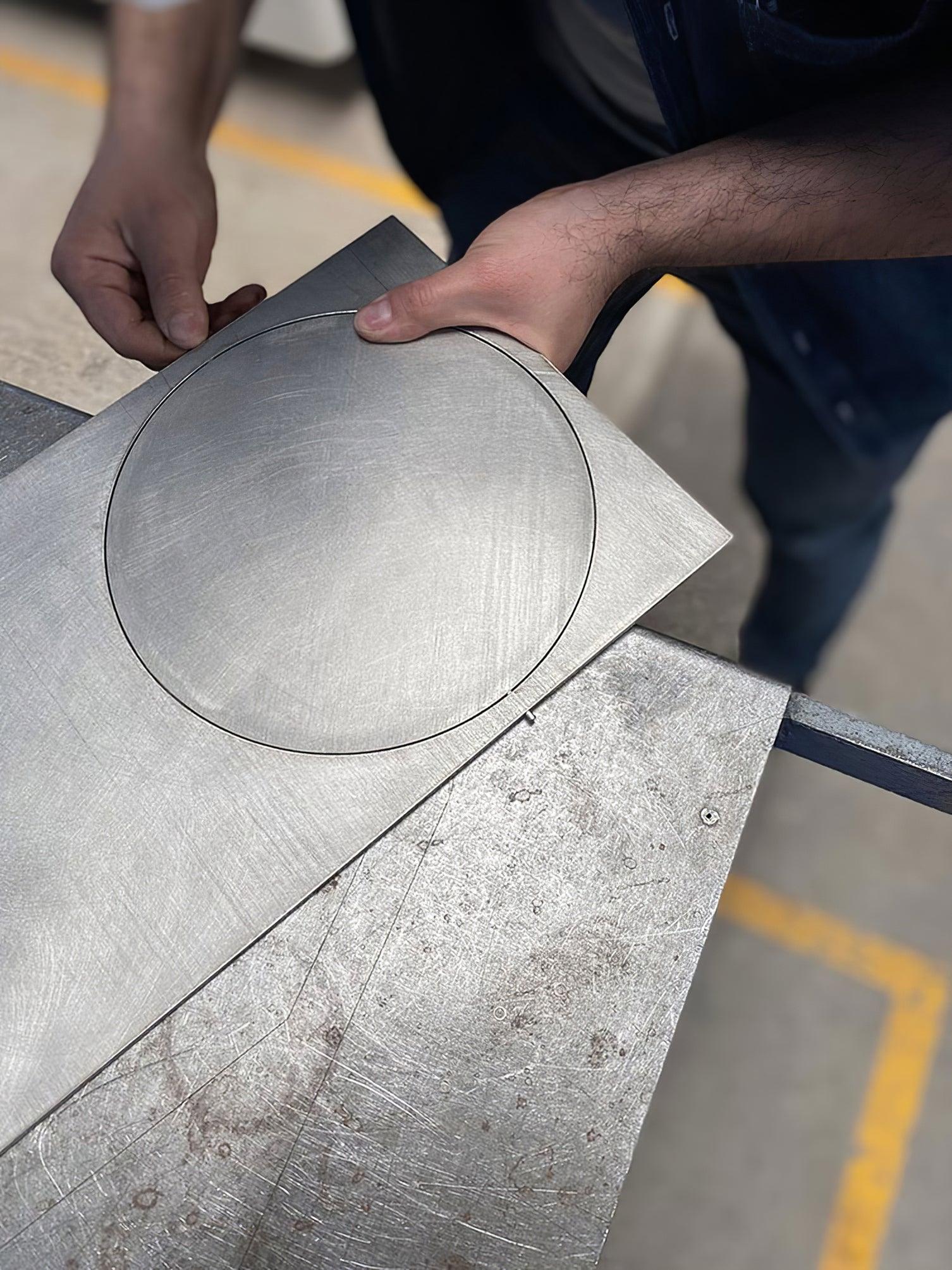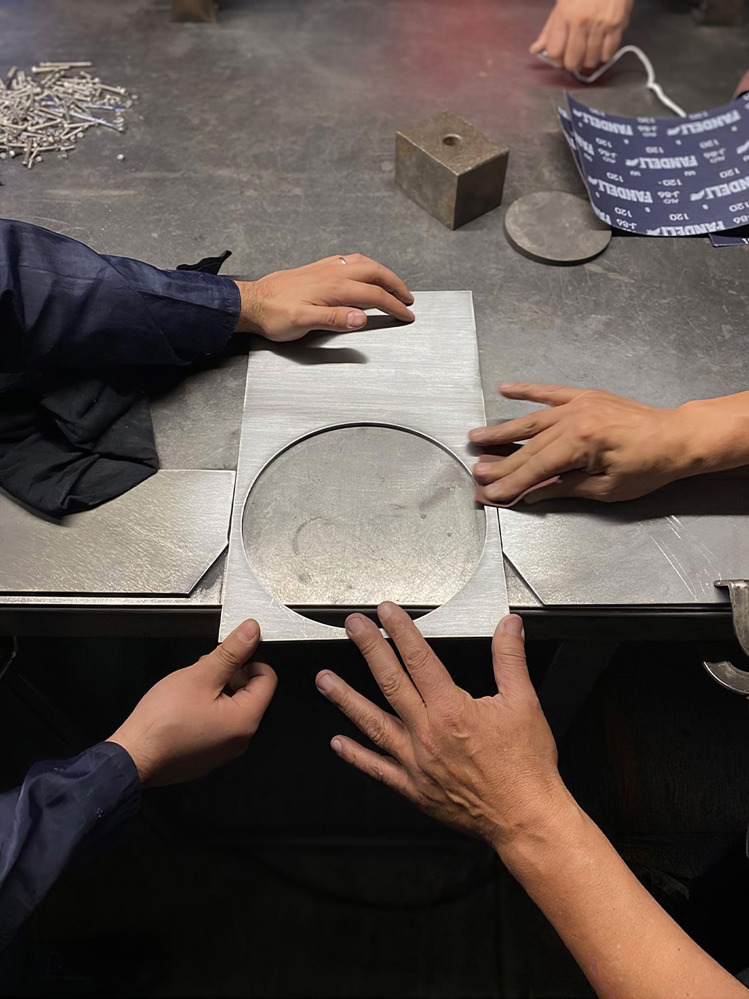 OBJ-01 is an understandable simple gesture. an object that needs no explanation. At a glance. it reveals its material. its manufacturing process. its function and its use. A plate of raw metal. cut by laser and assembled by hand with a rubber hammer and no welding joinery. Its size responds to the modulation and format of the material in its commercial standards. Pure geometric figures build the lighting fixture; a rectangle. a circle and a cylinder at the back which contains the LED light spot. The circle. when cut out. adopts the function of a screen and can rotate 360 degrees to direct the light at will.