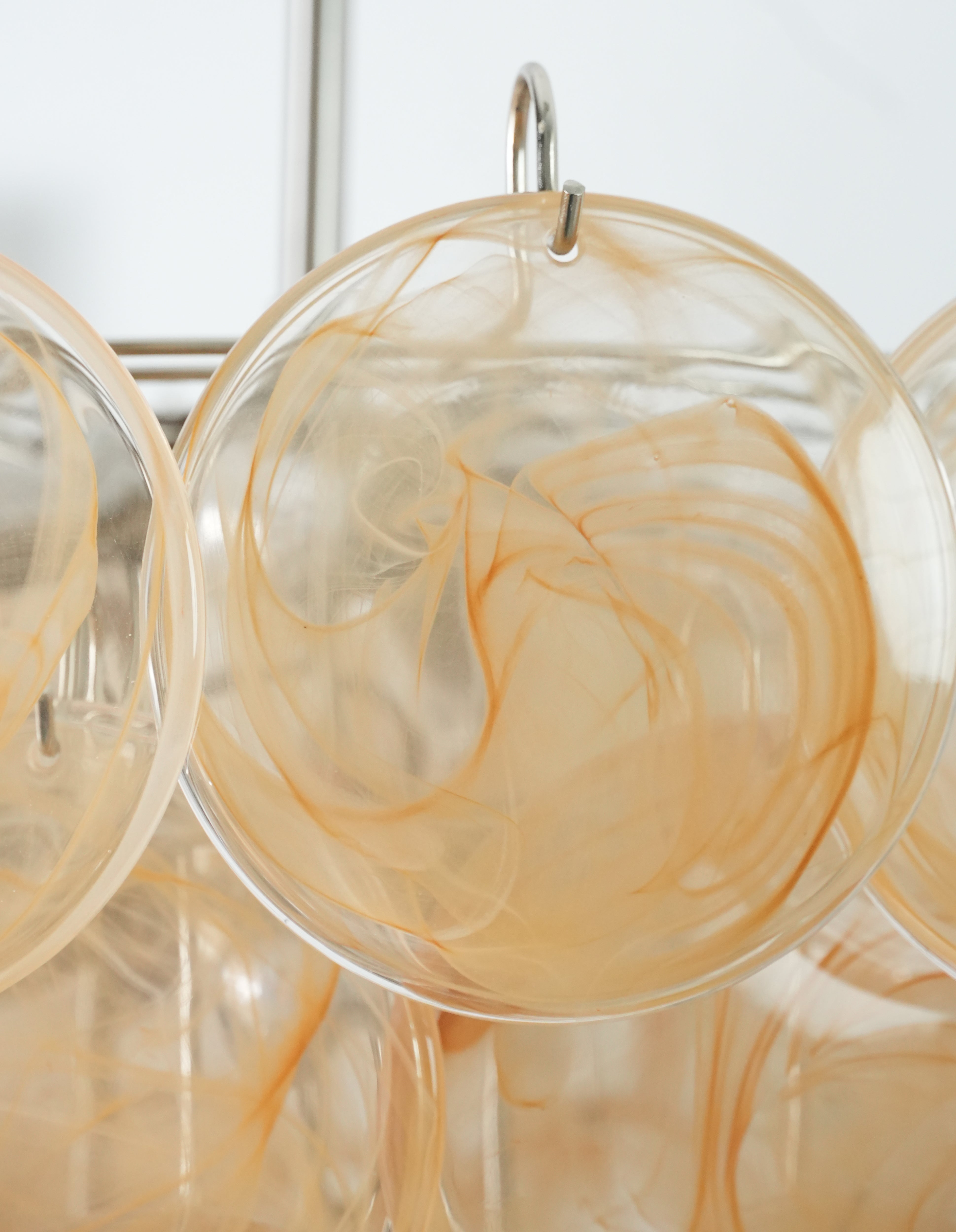 Introducing our Orange Murano Disc Chandelier. a stunning piece that effortlessly elevates any home decor. Crafted with exquisite Gold glass disks. this chandelier combines contemporary design with classic craftsmanship. creating a mesmerizing focal point in any room. The warm and inviting glow adds a touch of elegance to your space.