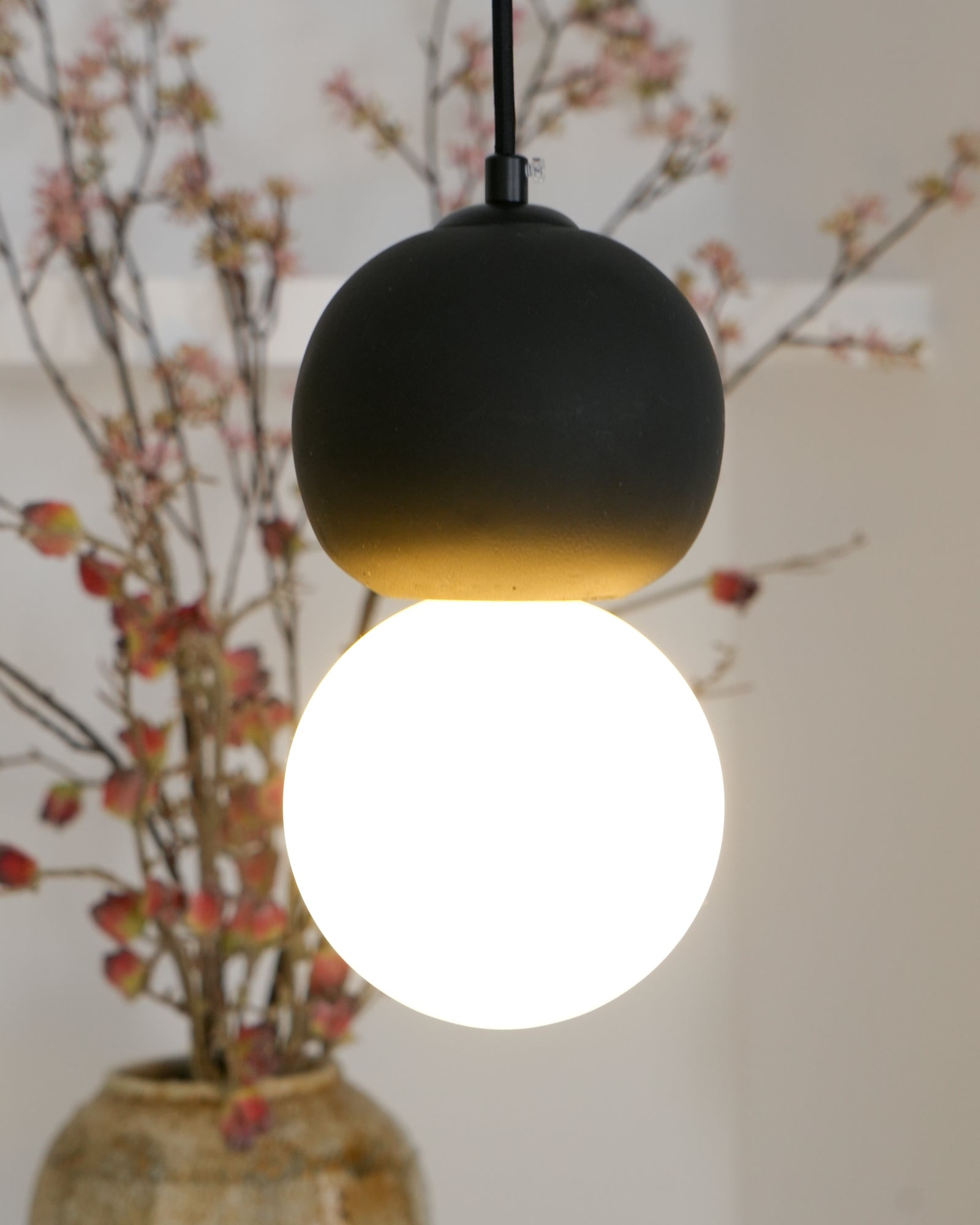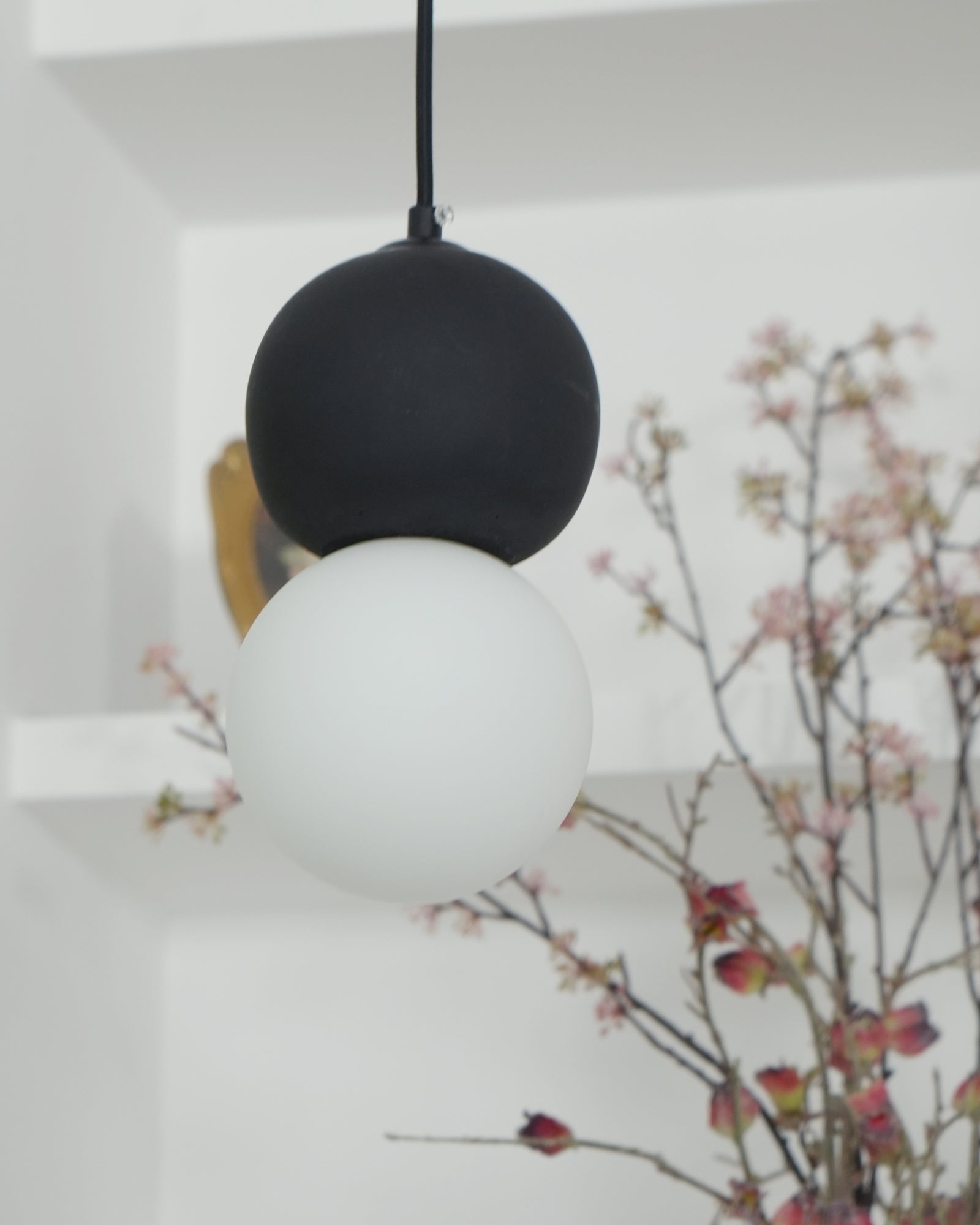 Geometry in its purest form. Origo embodies opposite essences mirroring volcanic rock and an opal glass diffuser. An exploration of interaction. light shining onto the texture of the volcanic rock. revealing its relief and contour. Sober and logical. both materials create a relationship between light and composition. Balance in its essence. lightness. and heaviness is expressed through a timeless piece. Spheres work as a double geometry. mirroring positive and negative. Reinforce the fundamental relationship between light and shadows.