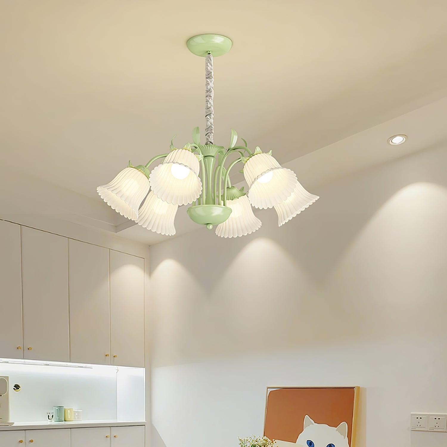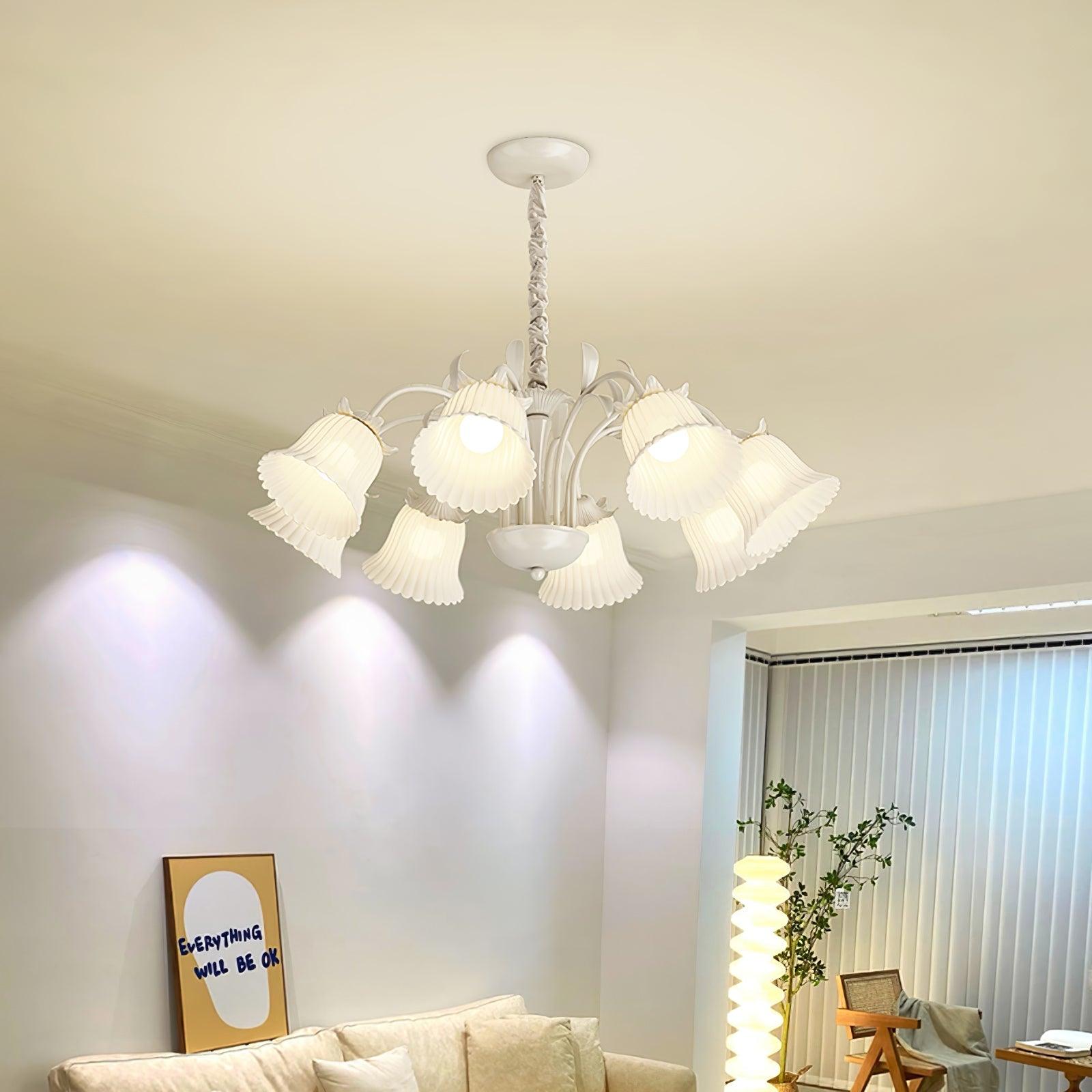 Illuminate your space with the luxurious Petunia Chandelier. Handcrafted from delicate glass petals. this stunning light fixture adds a touch of elegance to any room. with its graceful accents and ornately detailed design. Set the tone of your home with the Petunia Chandelier and bring sophistication to your space.