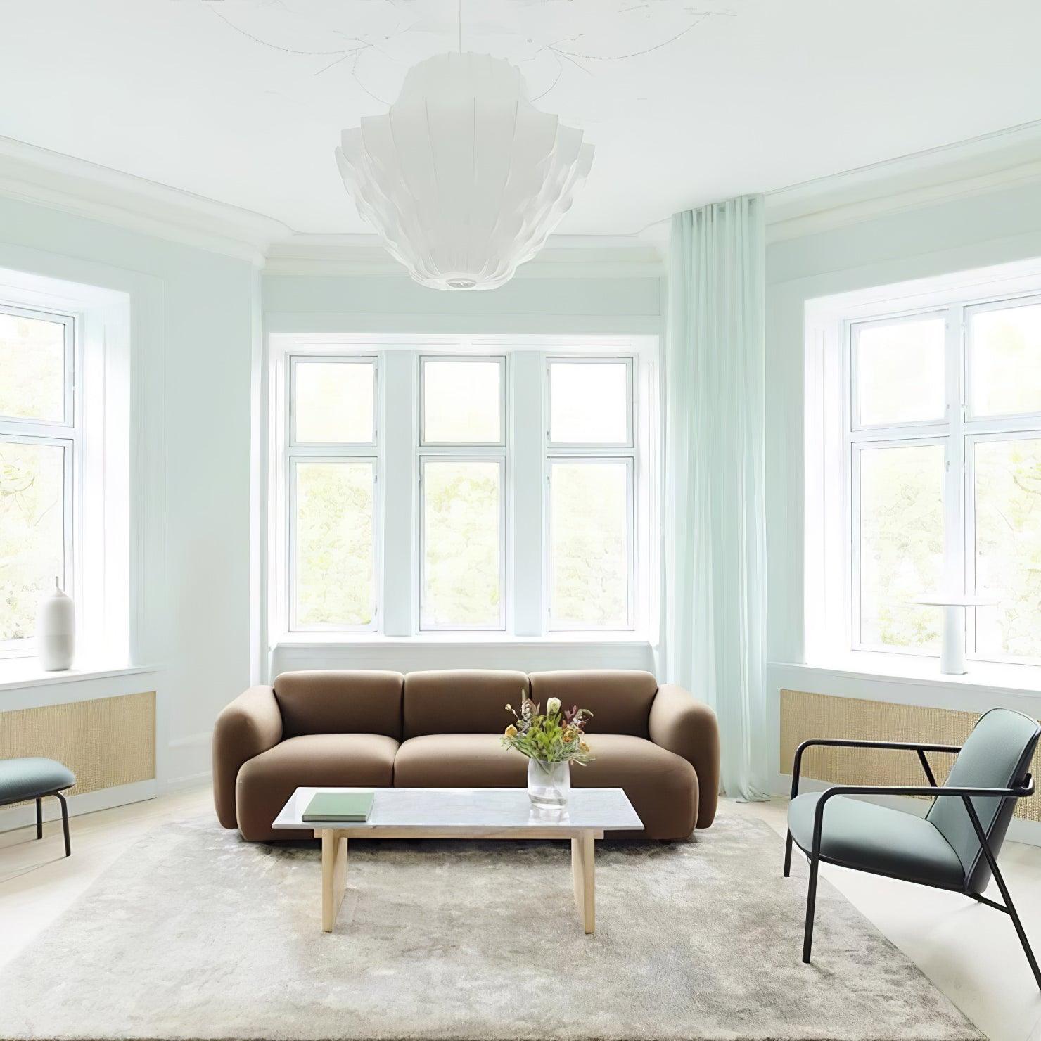 The Phantom Pendant Lamp is a statement piece with reliable and honest designs. Built with a steel frame and elastic material cocoon. it takes on an ethereal look reminiscent of classic chandeliers. With thin layers that resemble a cocoon. its soft and artistic expression fits perfectly with Scandinavian interior design's emphasis on minimalism.