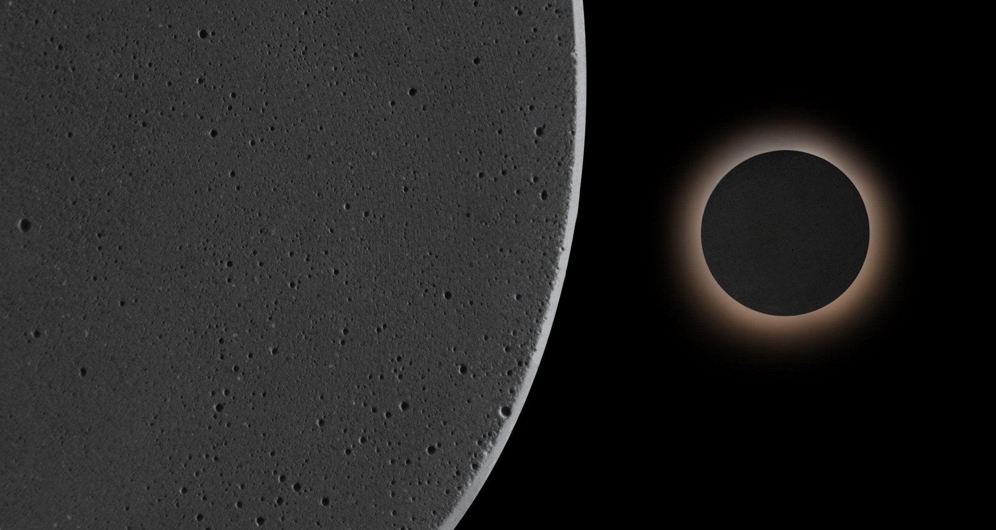 The PIN is a wall lamp made of terrazzo and aluminum It is available in Cement Grey. Black. White. Red. and Blue. Note*: Gray is made of concrete.