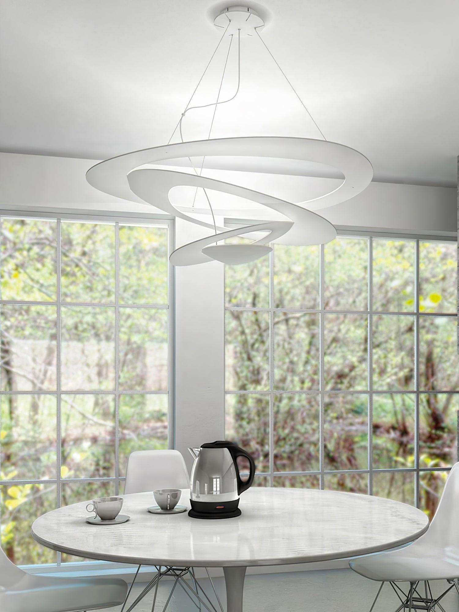 Transform your home into a space of sophistication and style with Pirce. a daring and lightweight pendant lamp designed with a spiral aluminum disc. Its sleek structure and bold aesthetic make Pirce a luxurious and contemporary addition to any décor.