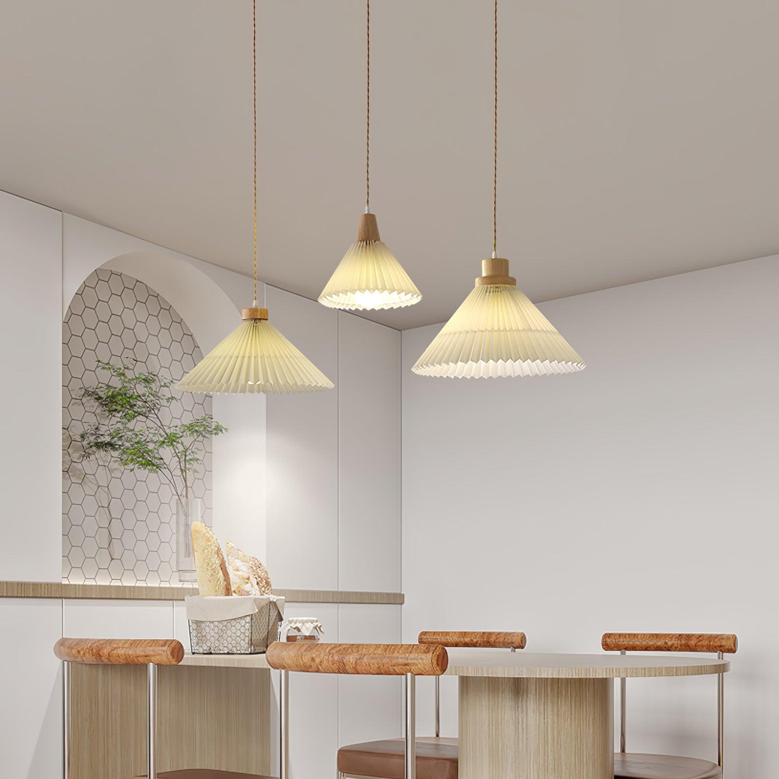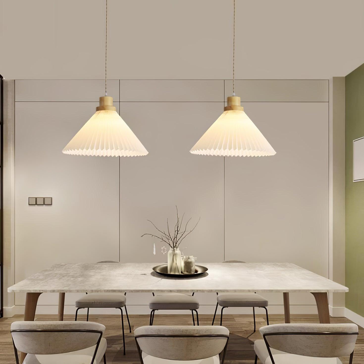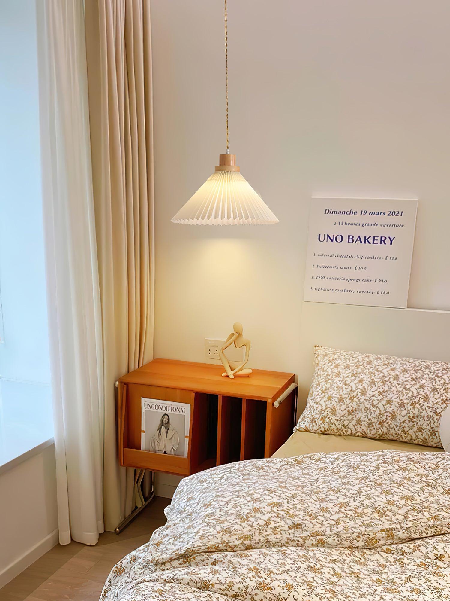 The Pleated Wooden Pendant Light is a stylish. modern lighting solution for your home. Crafted from elegant pleats of fabric. this light creates an inviting atmosphere that showcases the beauty of real wood. The combination of natural wood and contemporary design enhances the decor in any room.