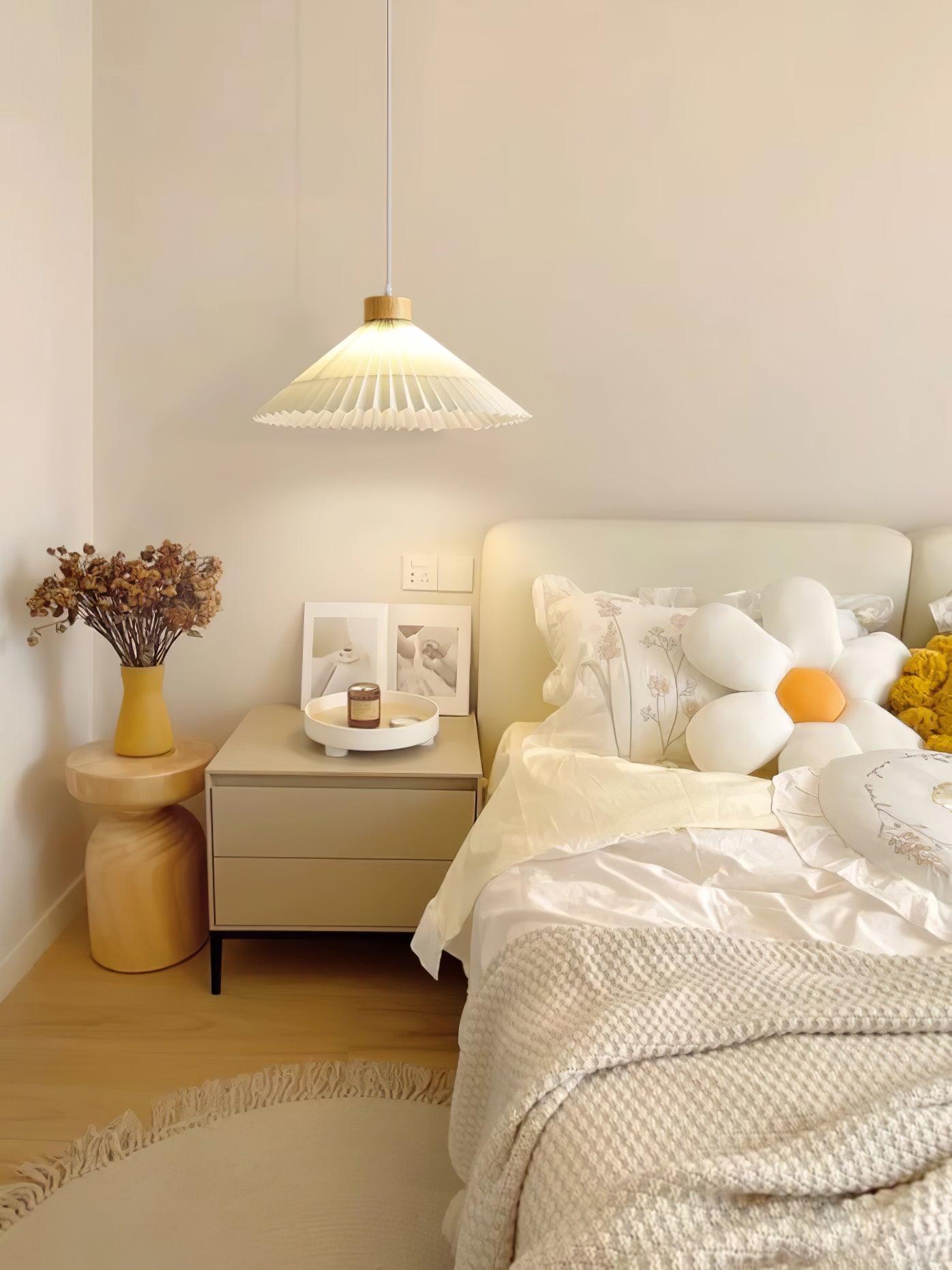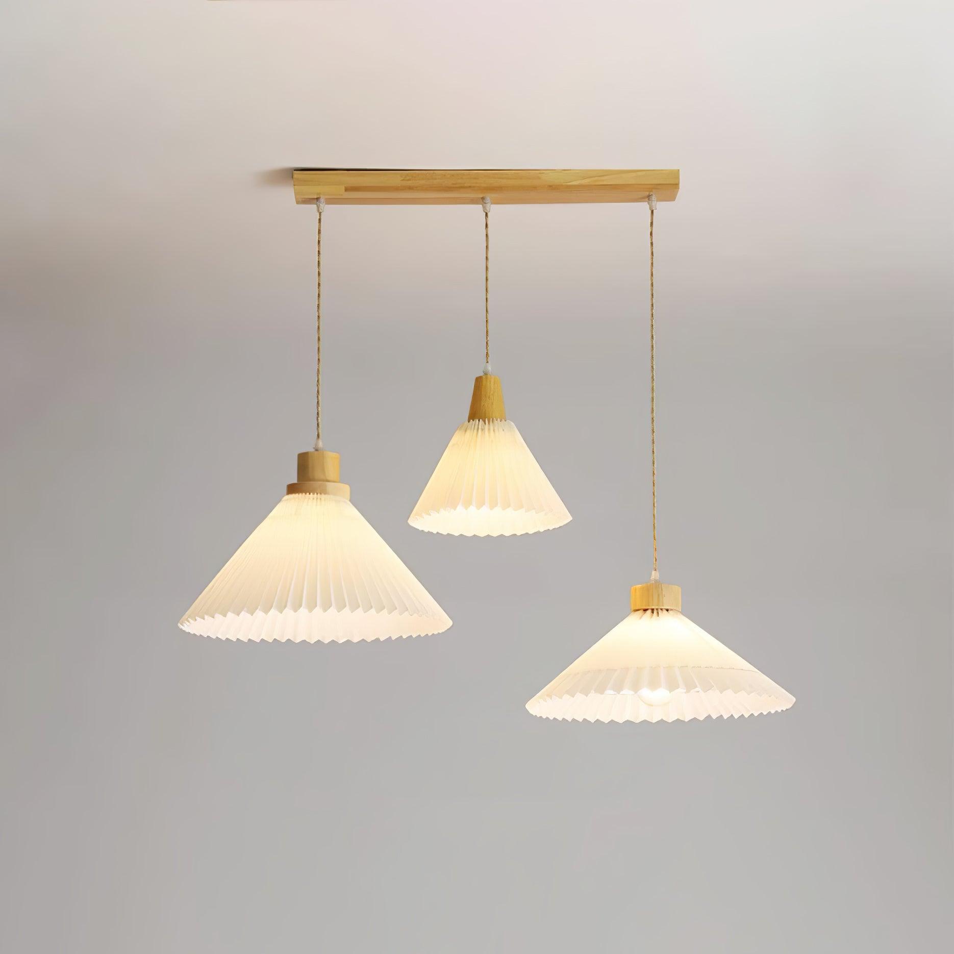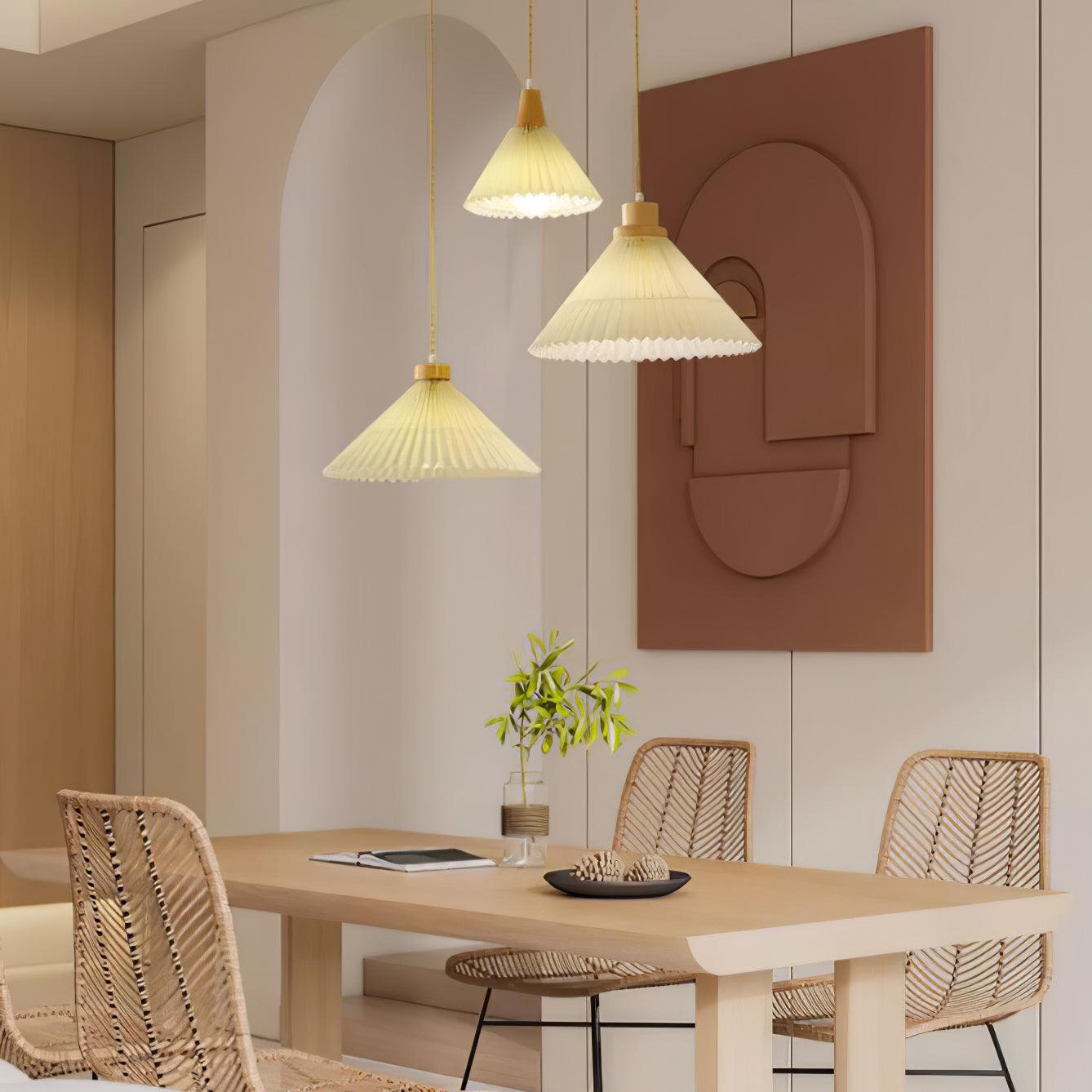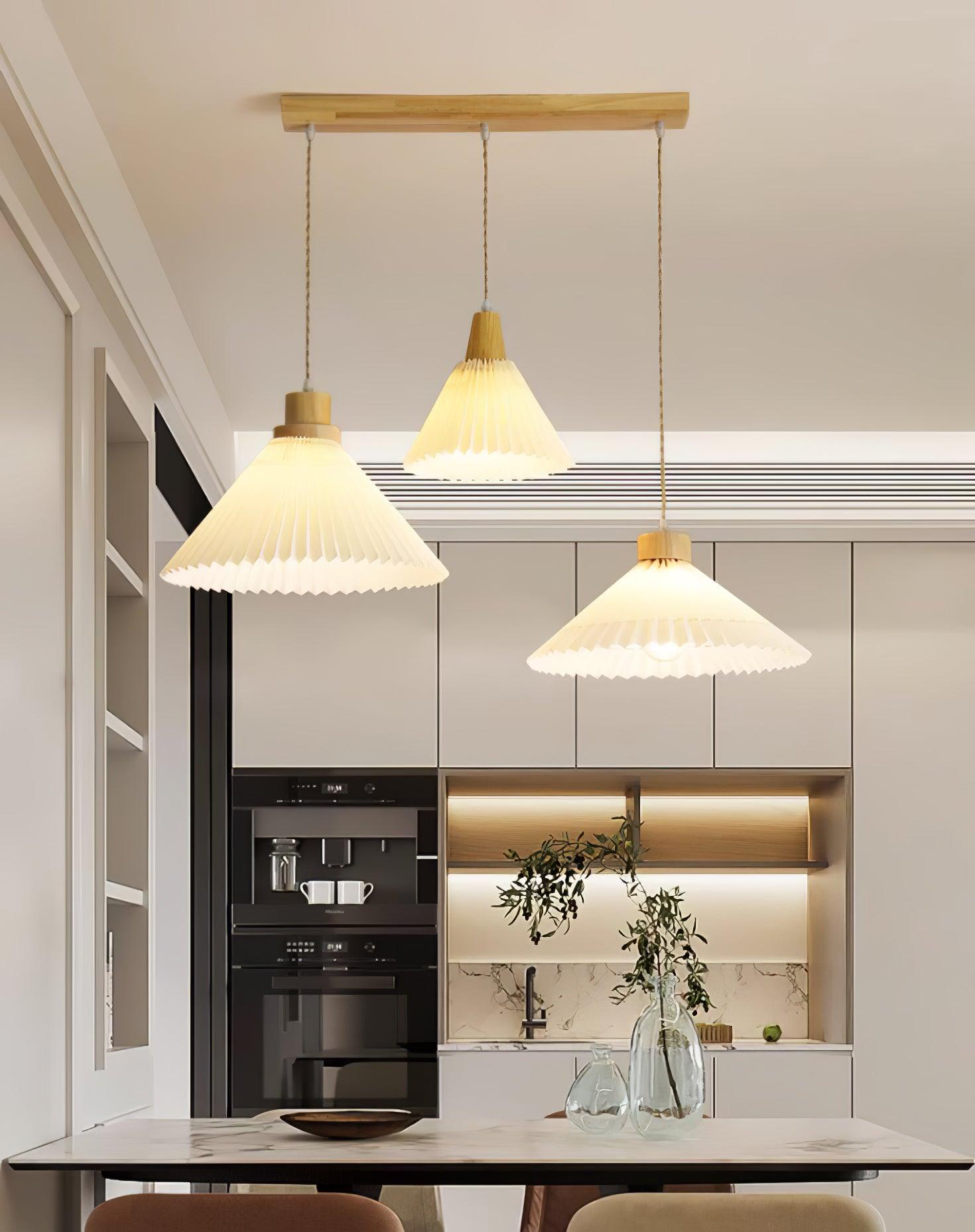 The Pleated Wooden Pendant Light is a stylish. modern lighting solution for your home. Crafted from elegant pleats of fabric. this light creates an inviting atmosphere that showcases the beauty of real wood. The combination of natural wood and contemporary design enhances the decor in any room.