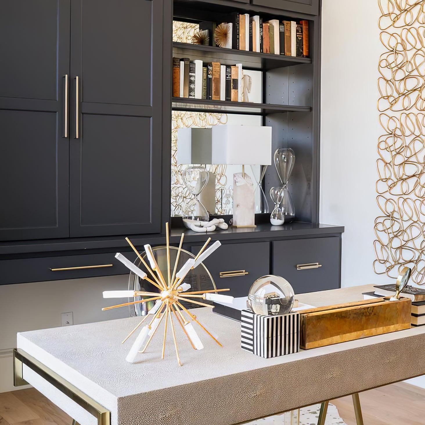 The creative collaboration of alabaster—featuring its raw form—and modern elements creates a contemporary piece with real edge. Paired with a tall natural linen tapered shade for added brilliance. this table lamp strikes a stunning balance perfect for any room.