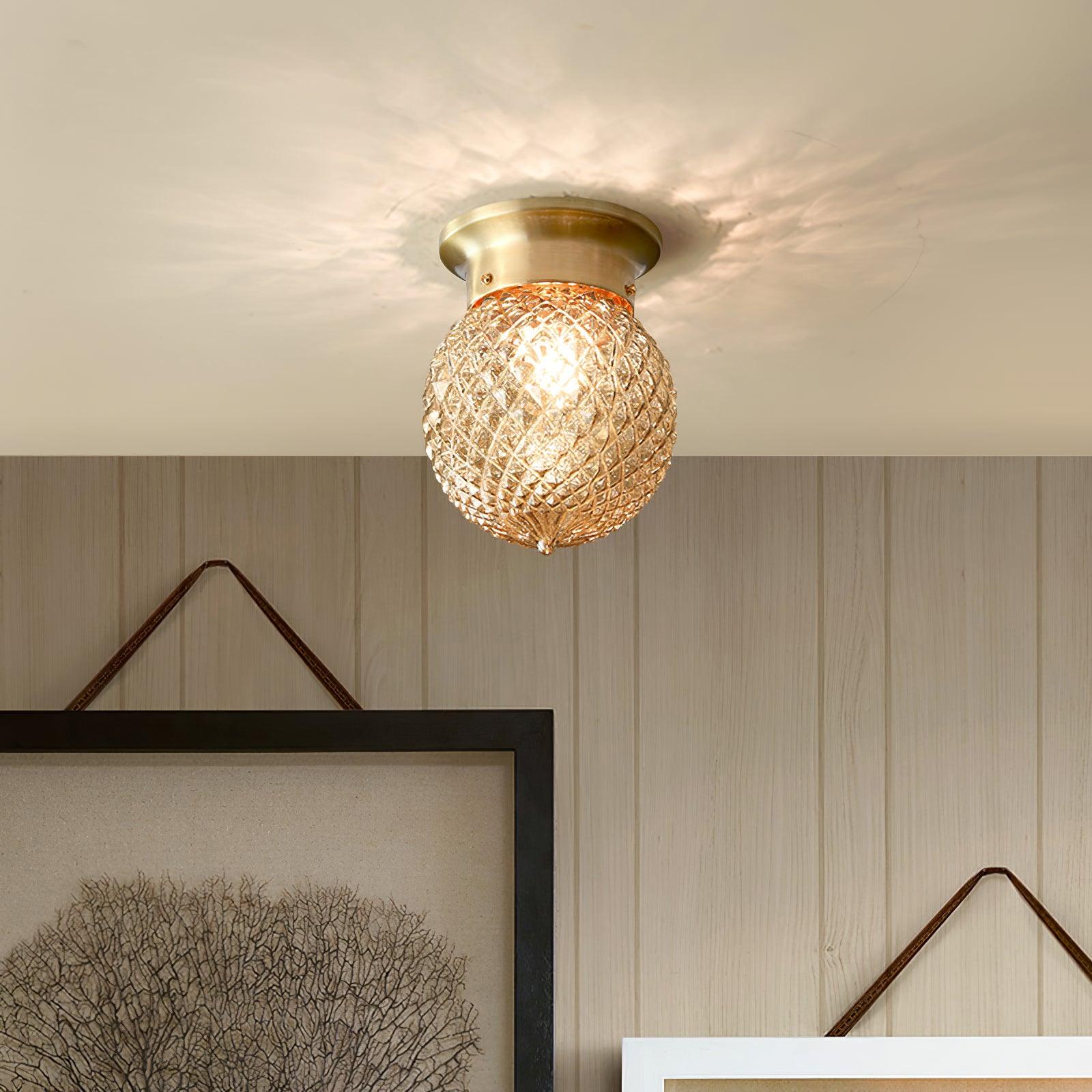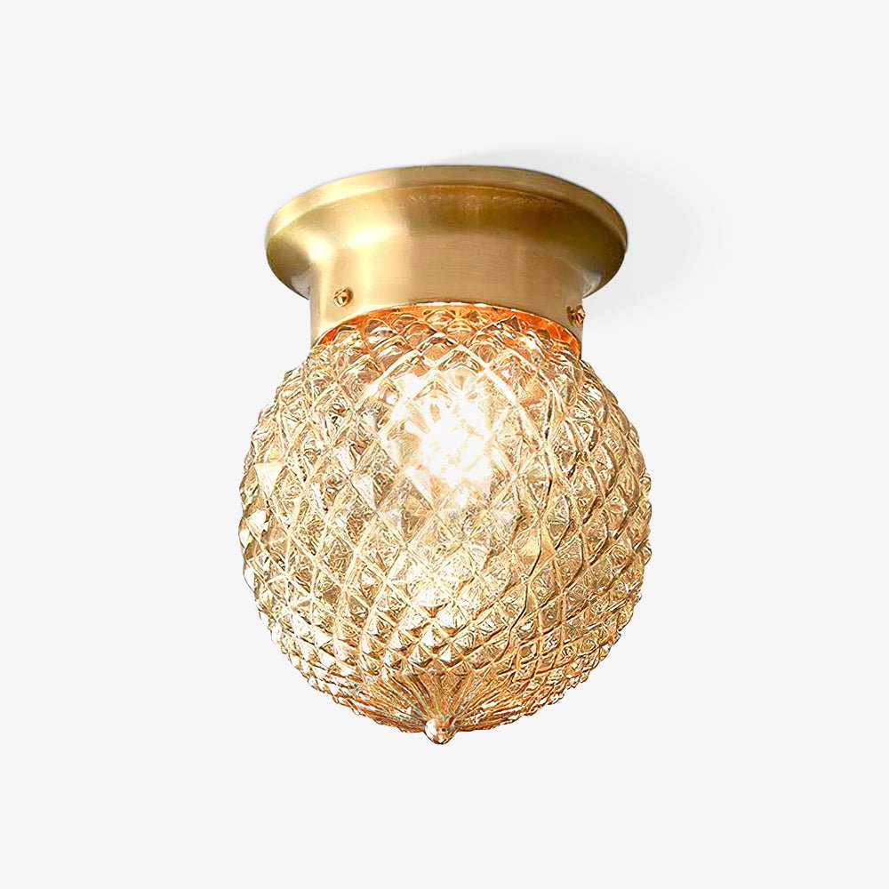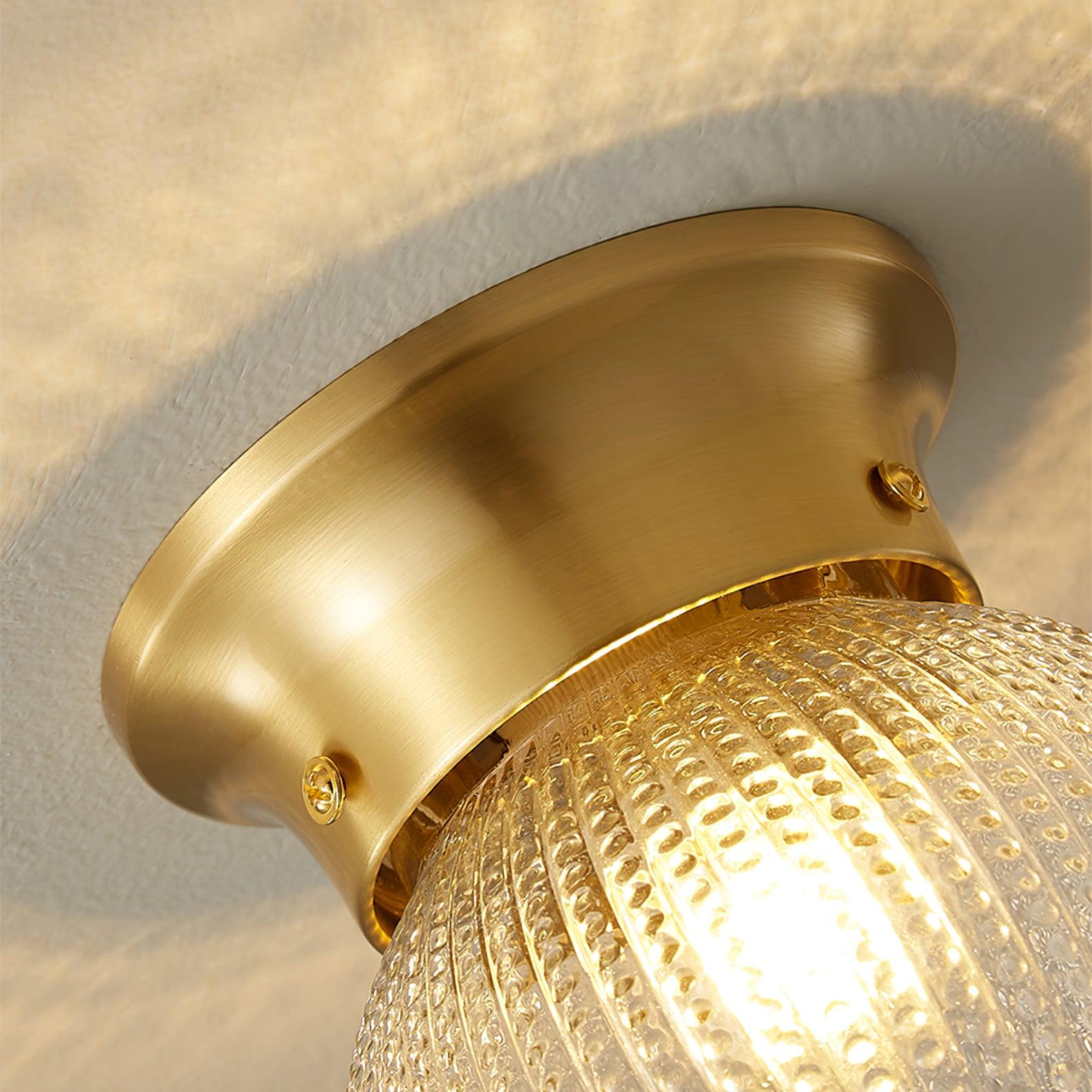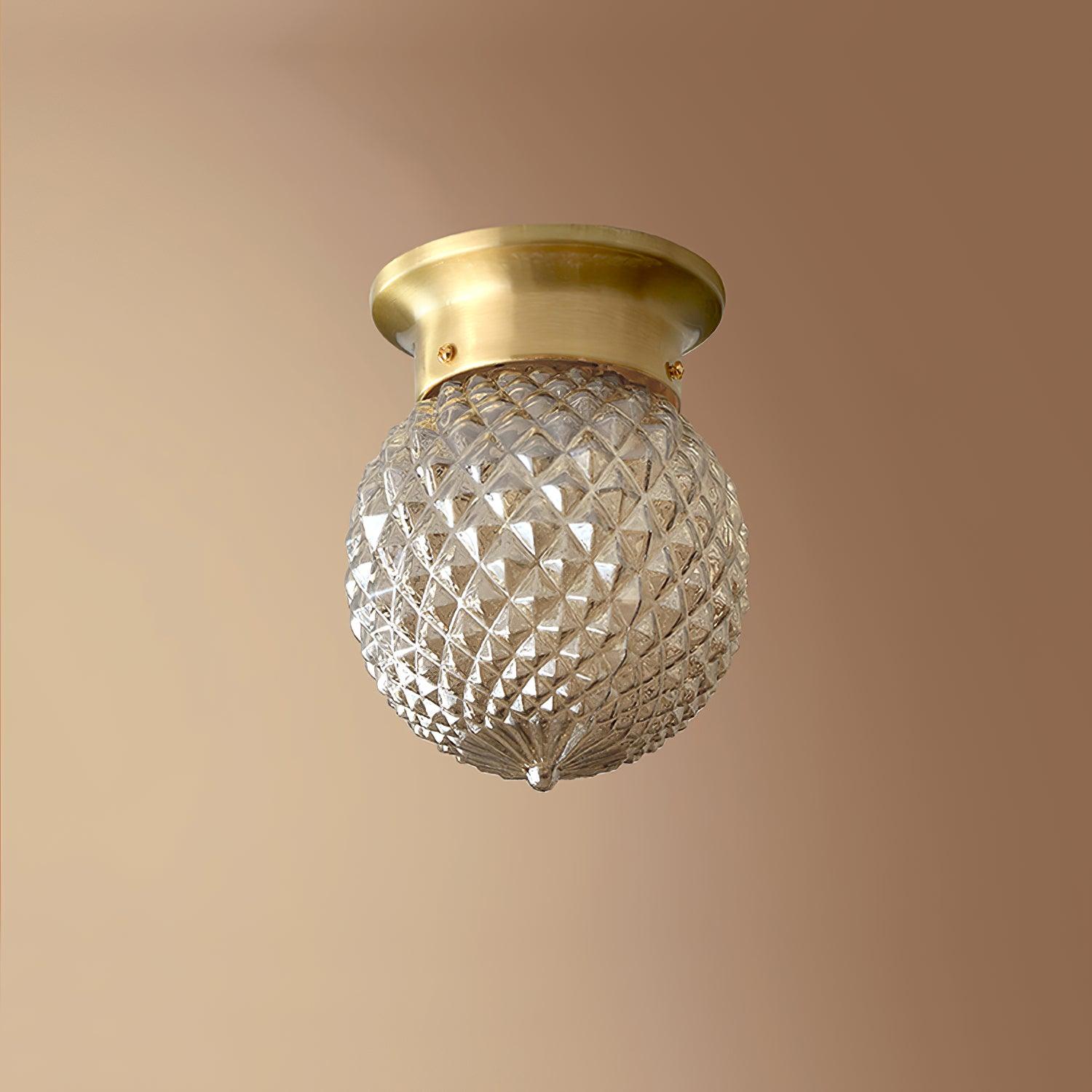 A charming little ceiling lamp made of pressed glass with a romantic look. The inspiration for this model was taken from past times. Pressed glass reached China as early as the 1830s and is still very popular. The antique brass fitting perfectly matches the style of the lamp.