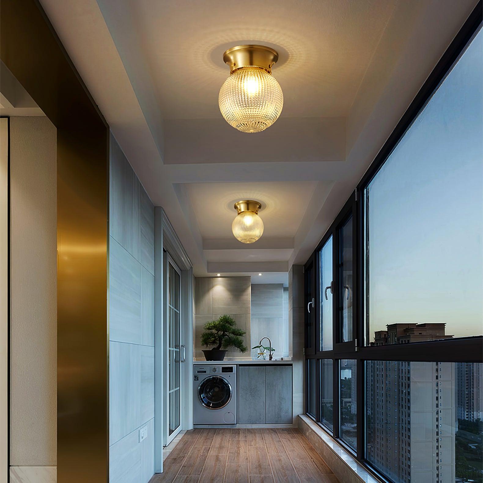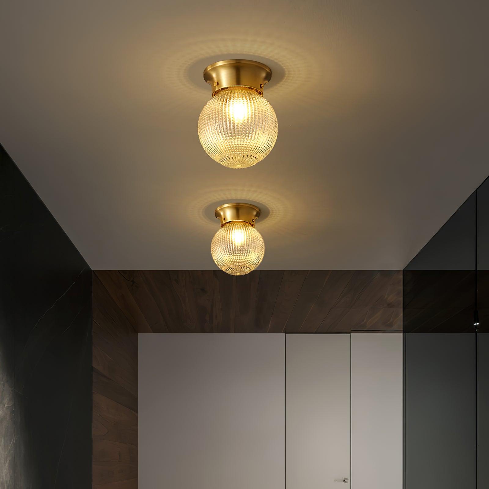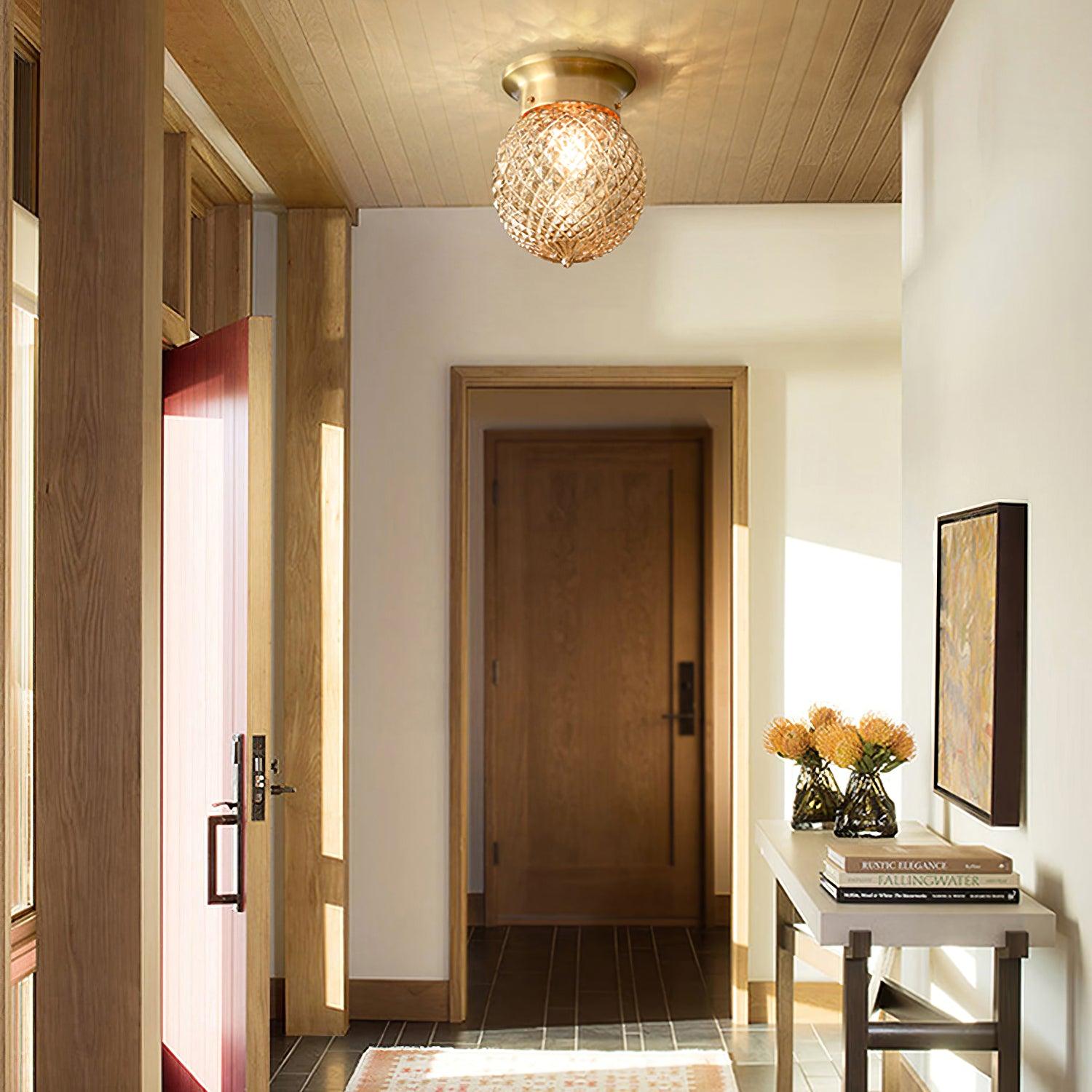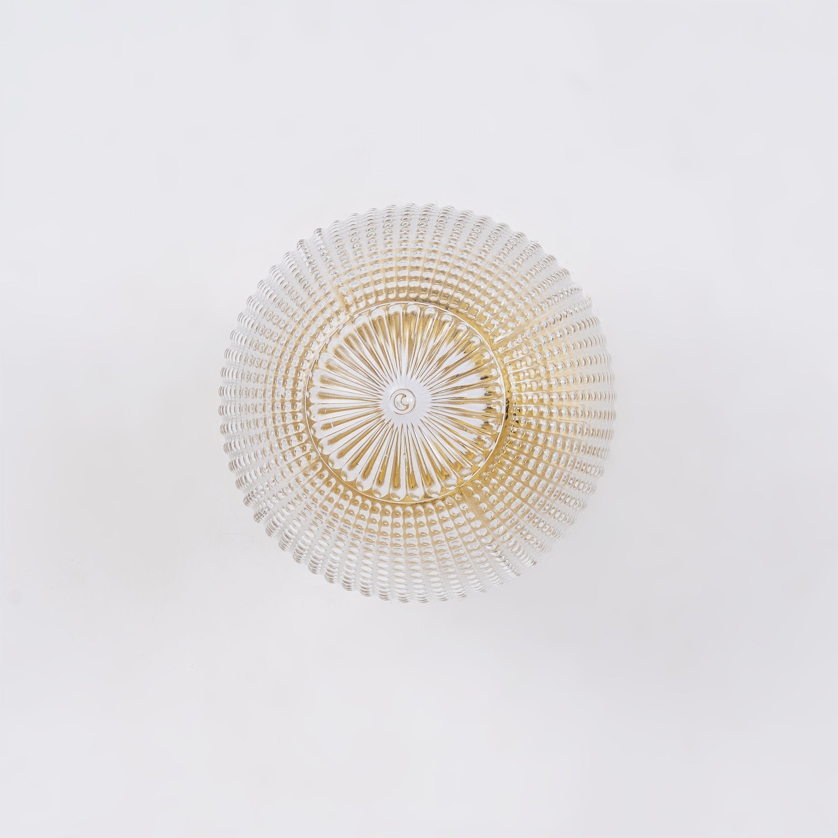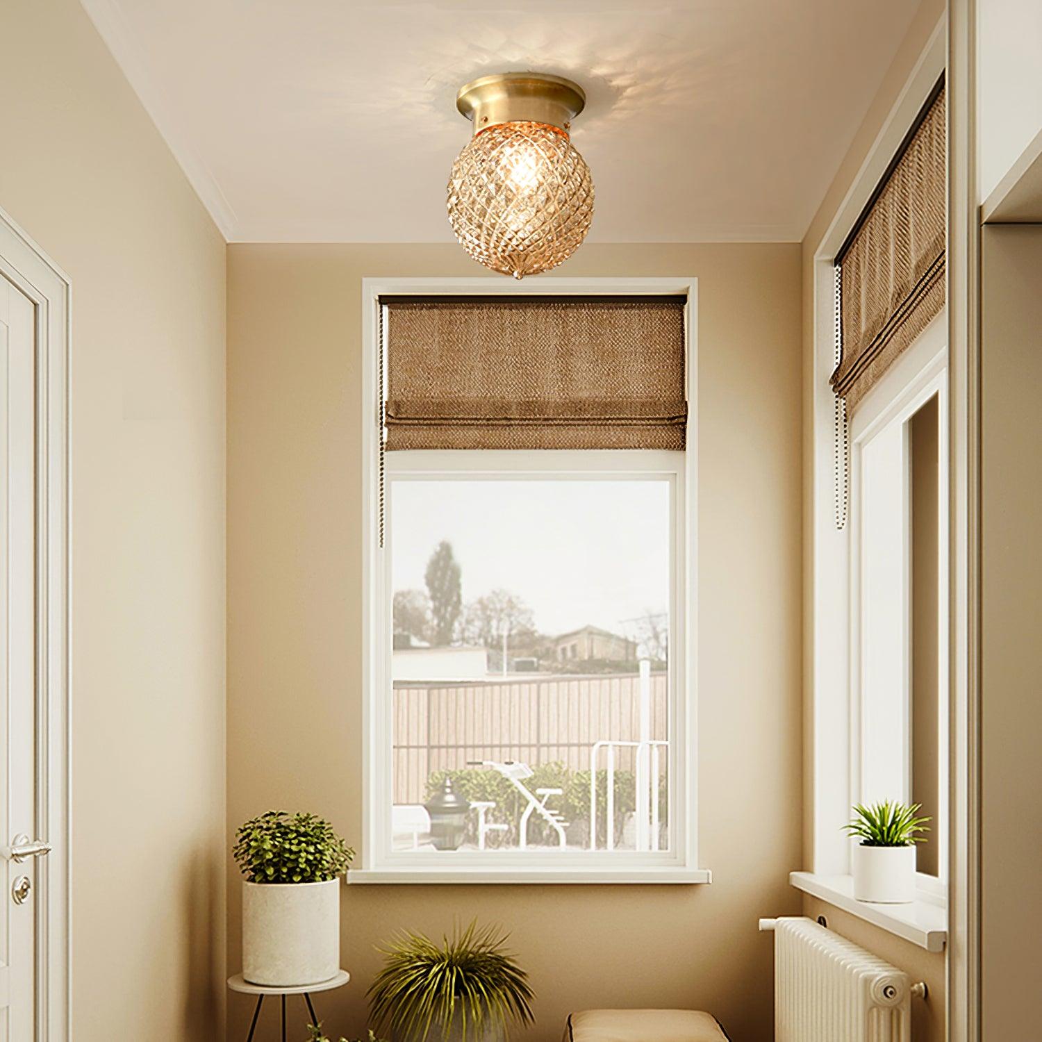 A charming little ceiling lamp made of pressed glass with a romantic look. The inspiration for this model was taken from past times. Pressed glass reached China as early as the 1830s and is still very popular. The antique brass fitting perfectly matches the style of the lamp.