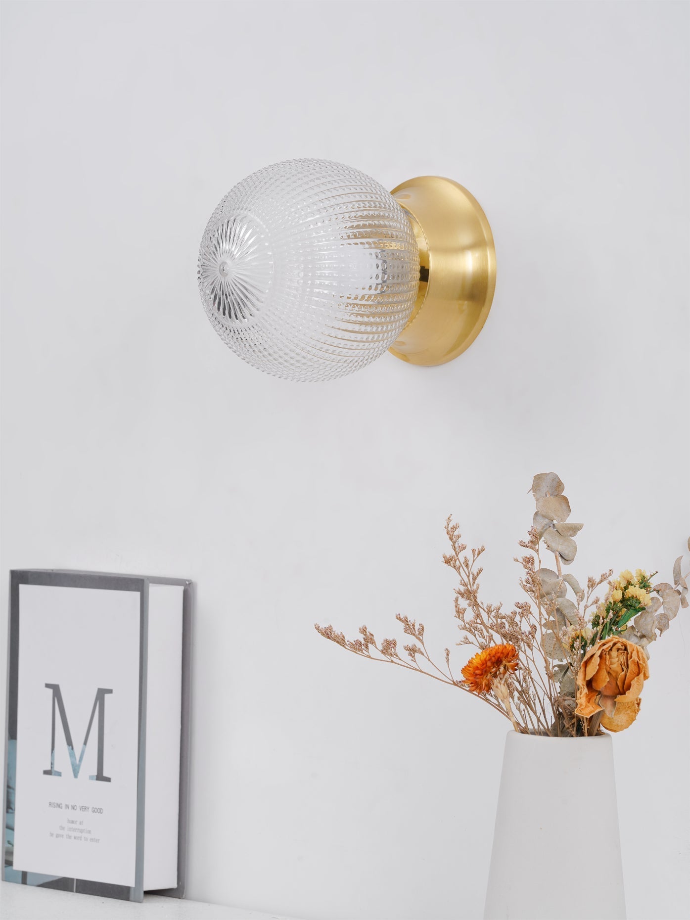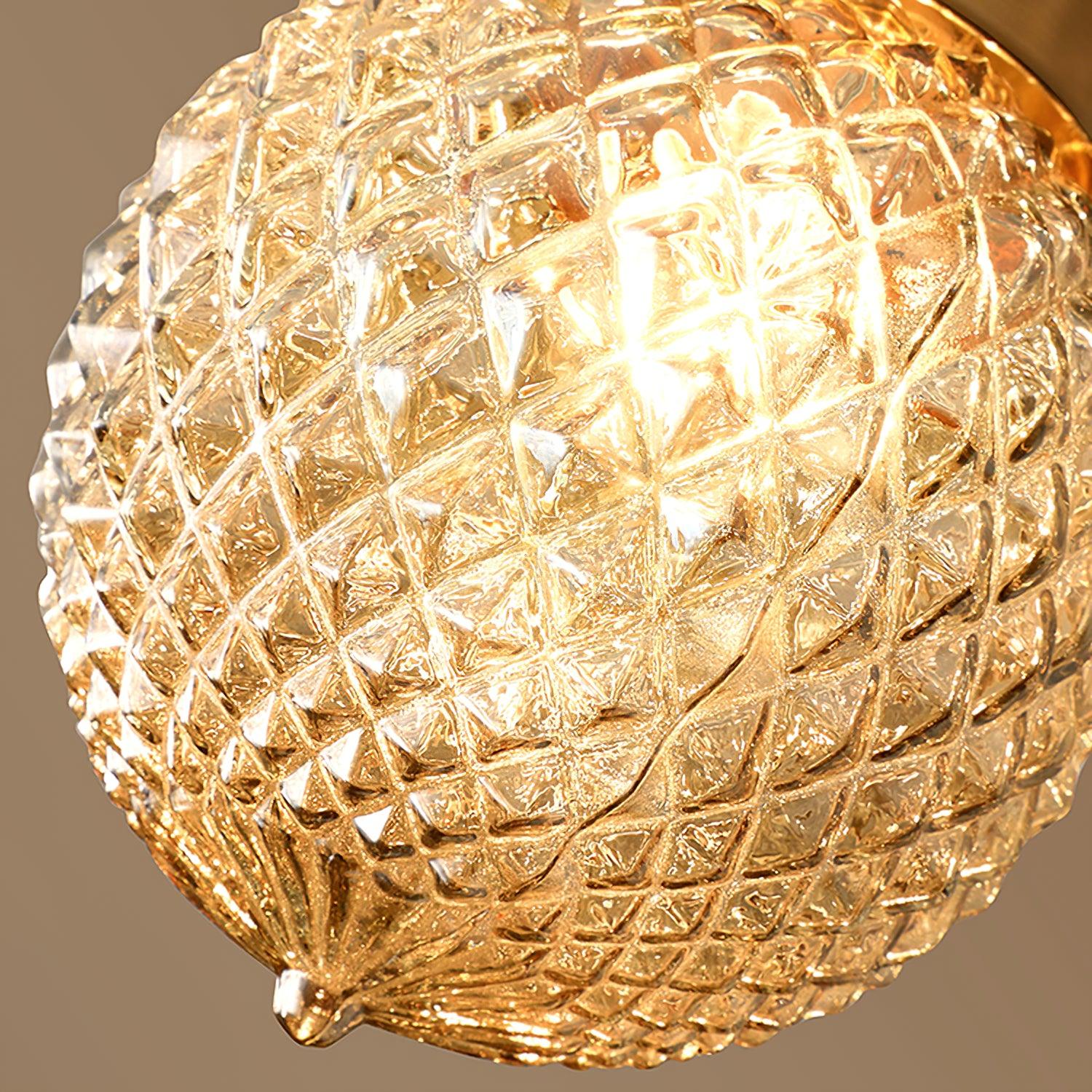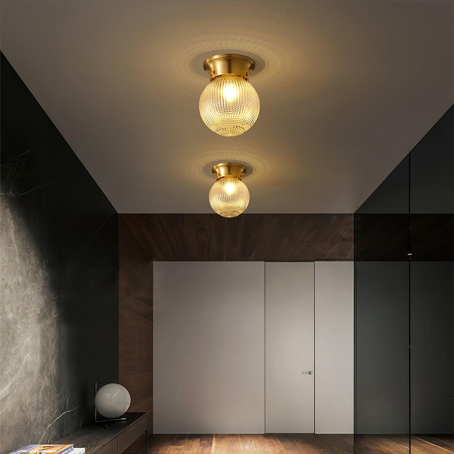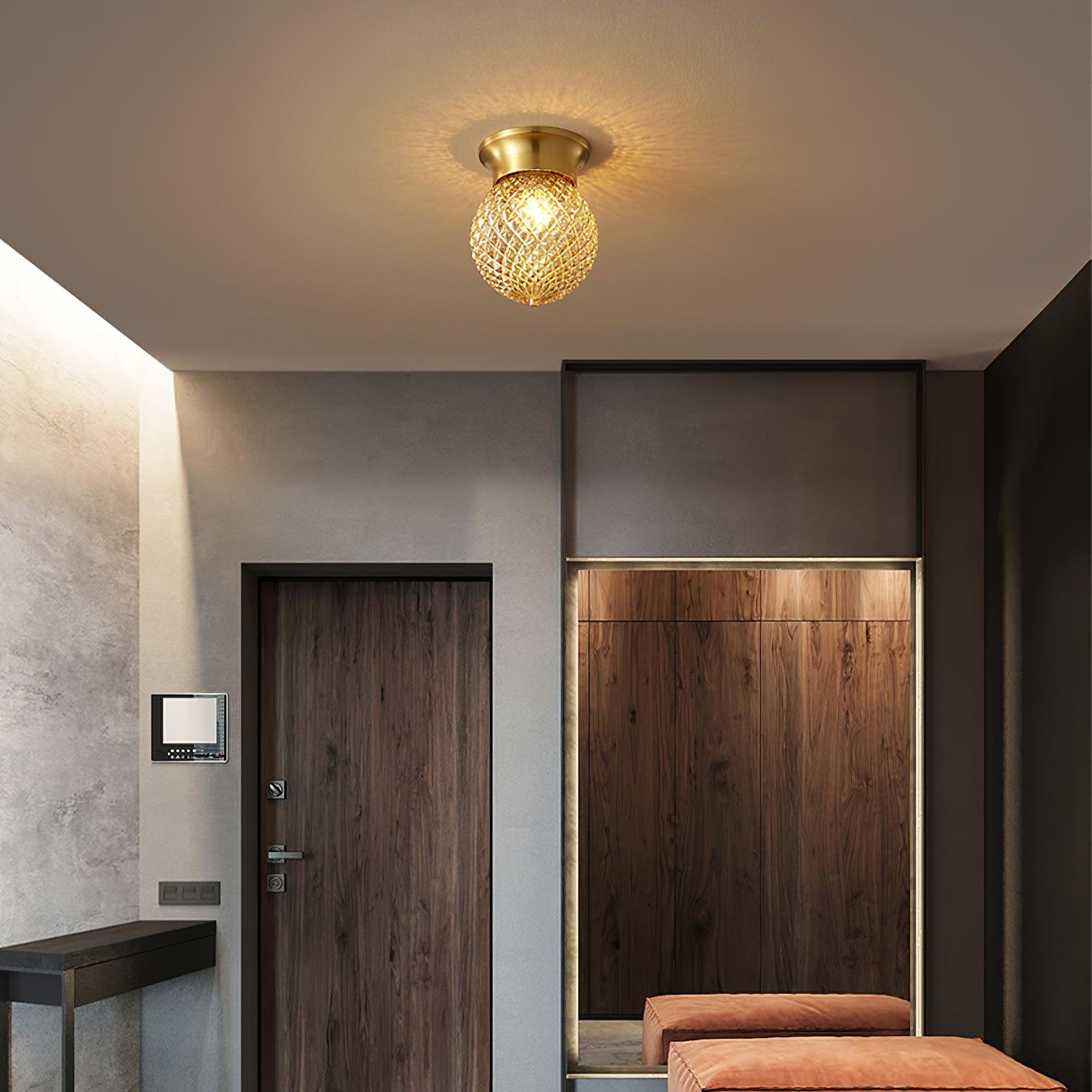 A charming little ceiling lamp made of pressed glass with a romantic look. The inspiration for this model was taken from past times. Pressed glass reached China as early as the 1830s and is still very popular. The antique brass fitting perfectly matches the style of the lamp.