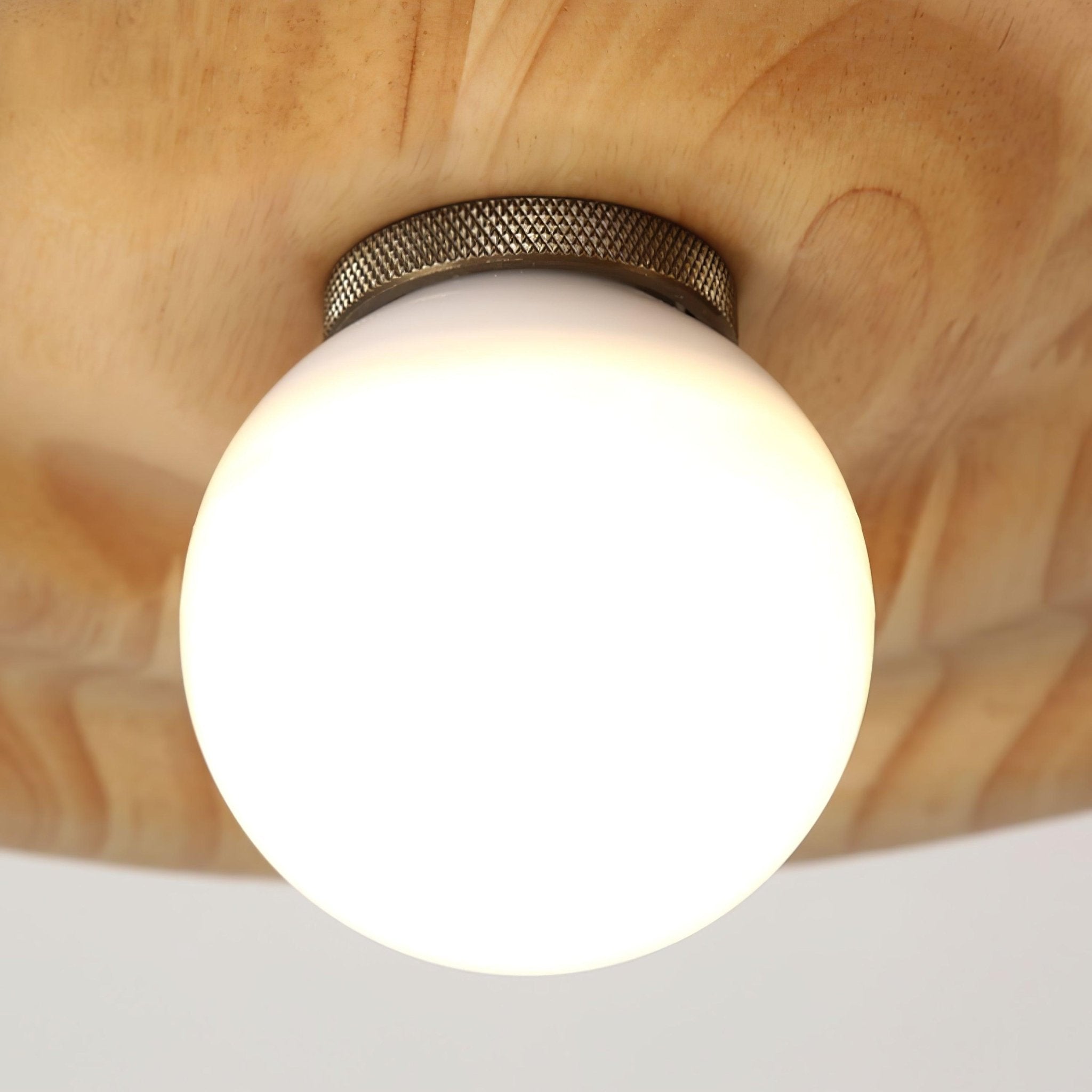 Suspended with understated grace. this fixture features a dome-shaped glass shade cradled by a wooden collar with an exquisite water ripple pattern. The wood's organic. wavy lines evoke the serene motion of water. while the translucent glass diffuses light into a soft. welcoming glow.