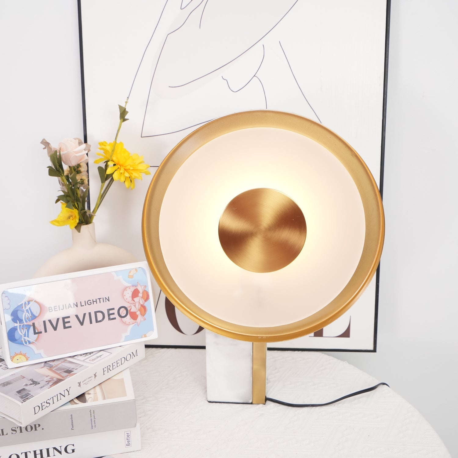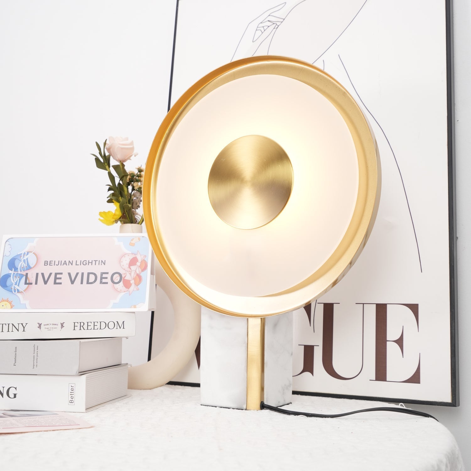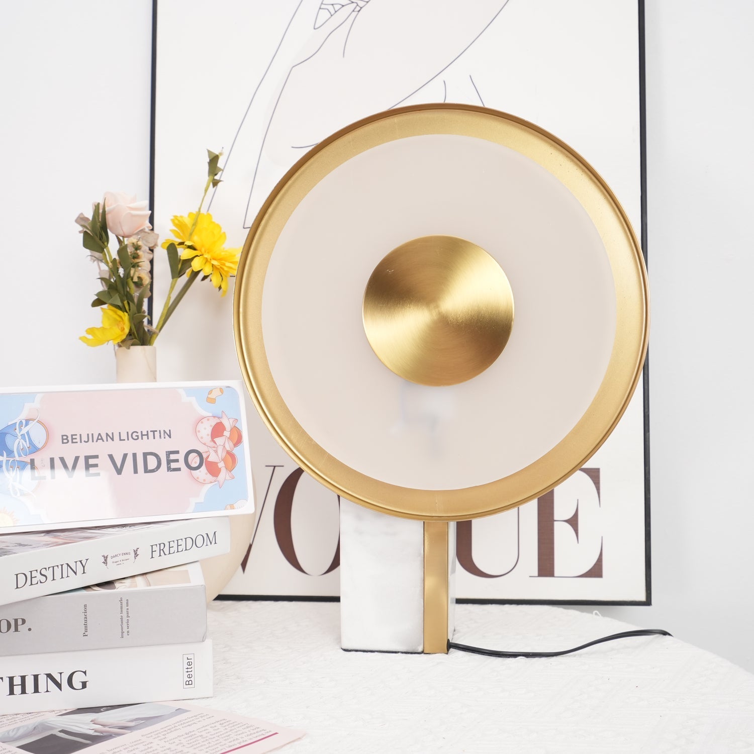 The designer revisits the lighted disc. The combines the nobility of marble with a Golden lamp body.This combination brings you a different visual enjoyment.