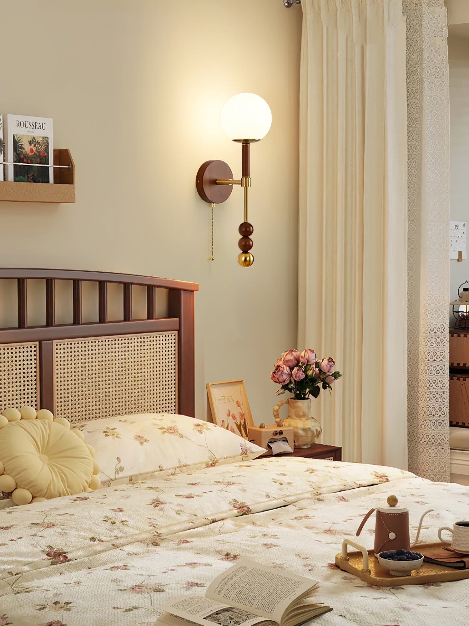 The Roma Wall Sconce is inspired by the timeless elegance and grandeur of French and Roman design. This sconce features a glass shade that casts a warm. inviting glow. reminiscent of historic European interiors. The sophisticated blend of wood and brass elements evokes a sense of luxury. while the vintage pull chain adds a touch of classic charm. Perfect for adding a refined and cozy ambiance to any space.
