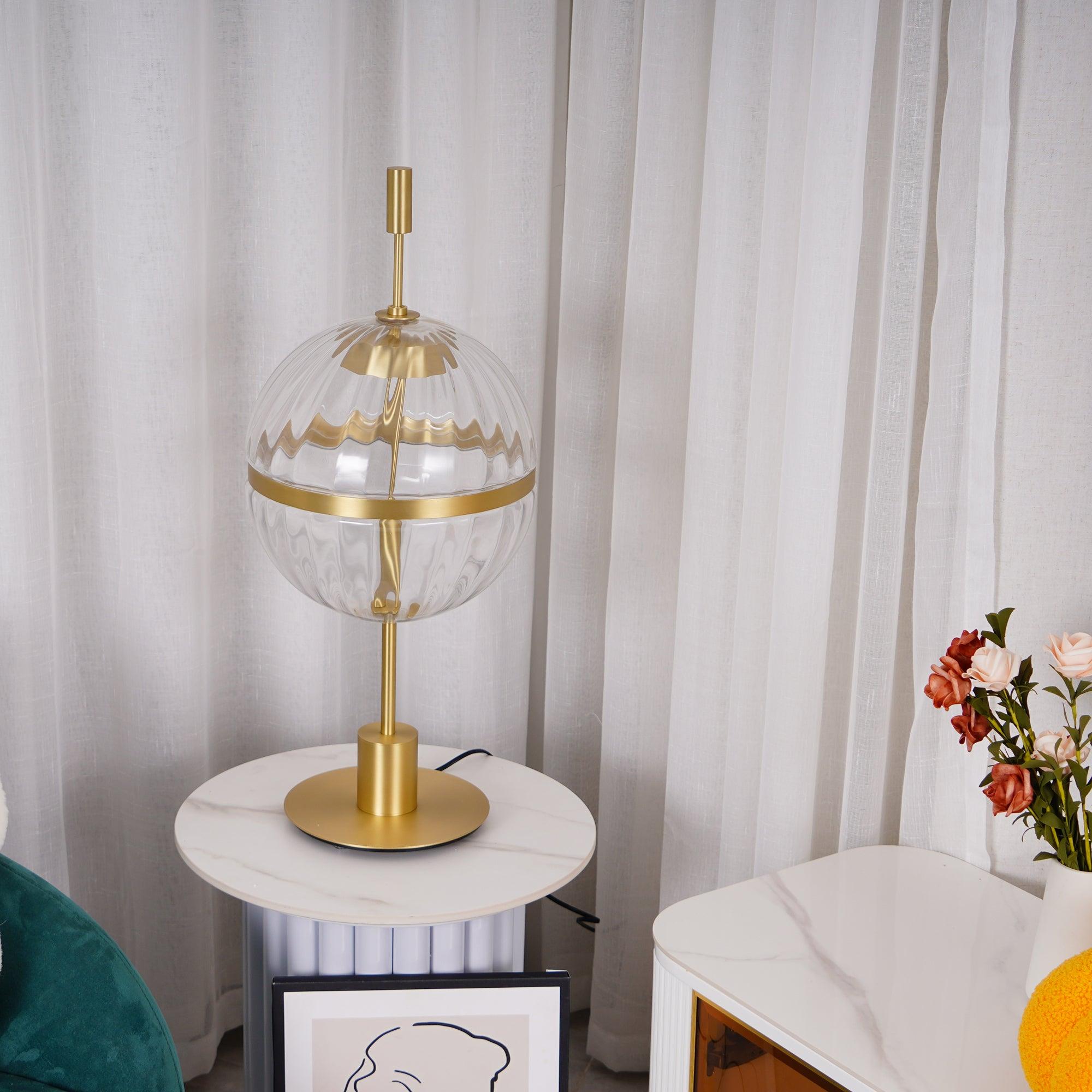 Bring designer style to your living room with the Sebastian Table Lamp. This elegant and sturdy piece features a vintage-inspired fluted cylindrical glass. blending modern and luxury for an incomparable look. Let it bring light and beauty to your space.