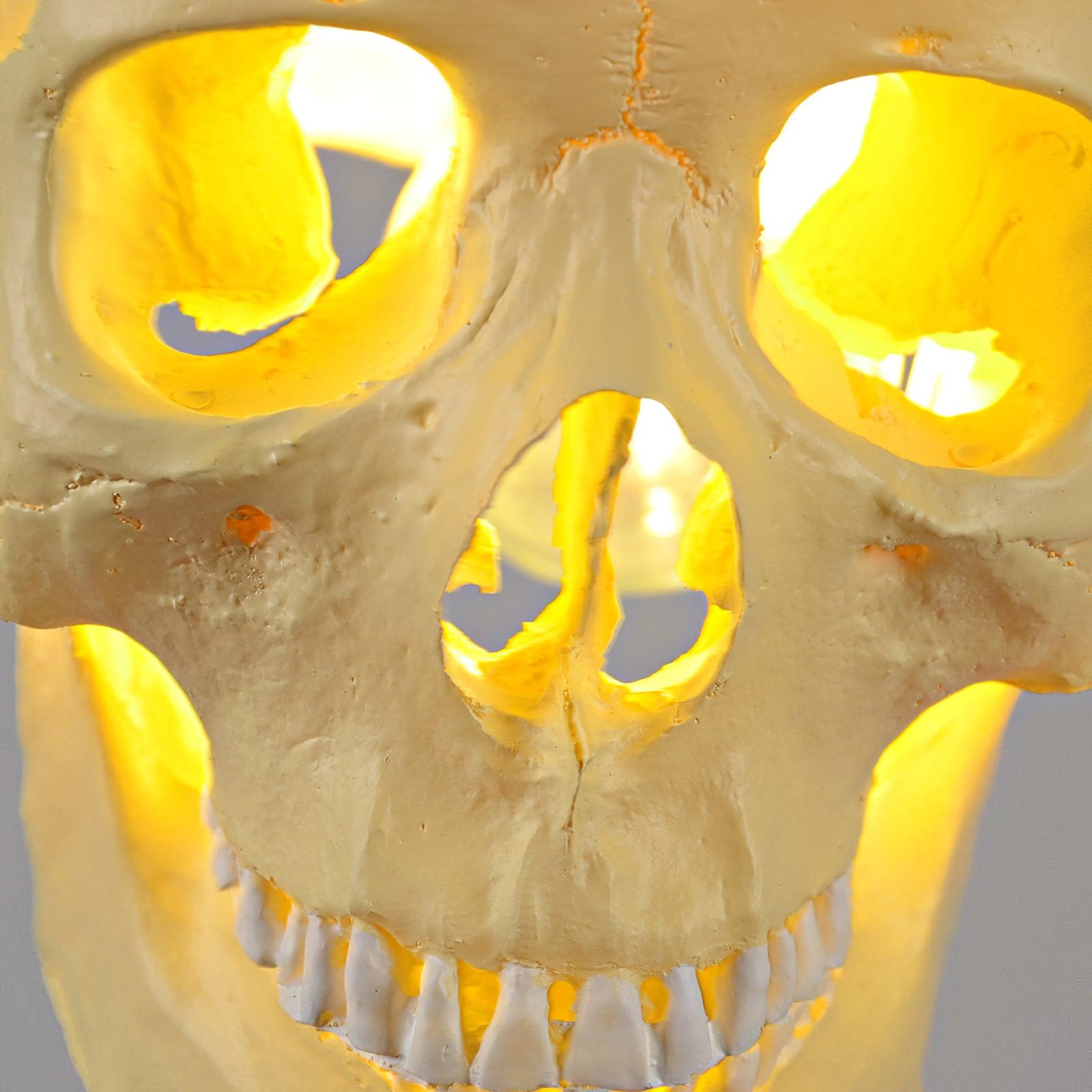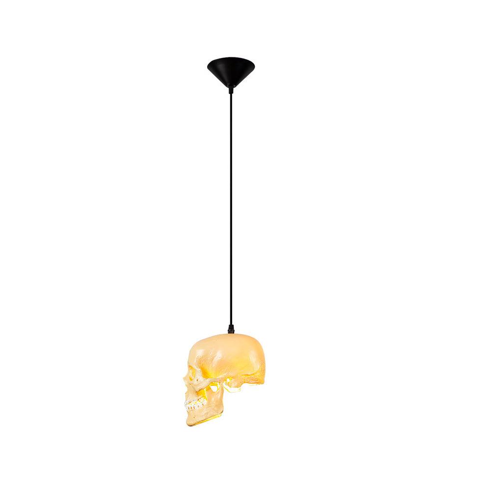 Crafted with meticulous attention to detail. the Skull Pendant Light features a seamless fusion of metal and resin materials. The metal add an element of elegance. beige the resin creates a stunning visual contrast with its milky ivory shade. This unique combination results in a truly captivating lighting fixture that effortlessly complements any interior decor style.