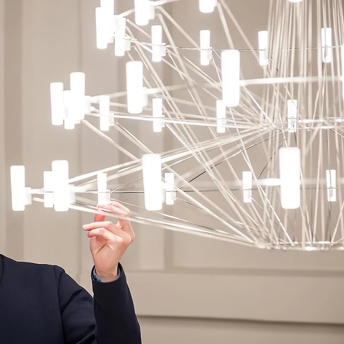 The Sky Ballet Chandelier is a beautiful lighting fixture crafted from stainless steel and acrylic. Its classic design adds a touch of elegance to any space. while its airy structure still allows ample light to flow for luminous ambience. Enjoy a unique statement piece in any room.