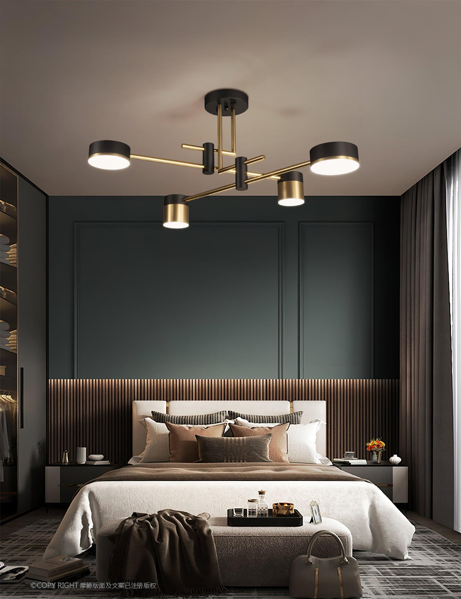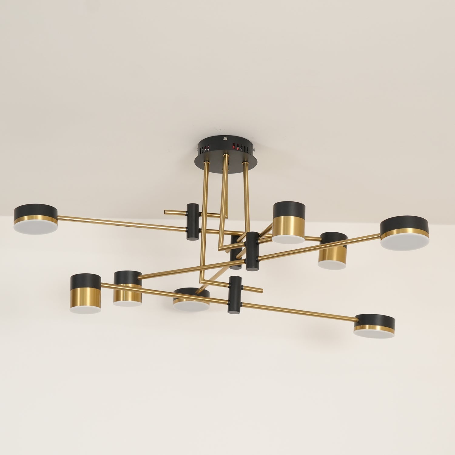 Spider's six black arms. accented at their ends with shades of gold. reach out and over one another. creating an unmatched visual dynamism and bathing all below in a warm. soft light.