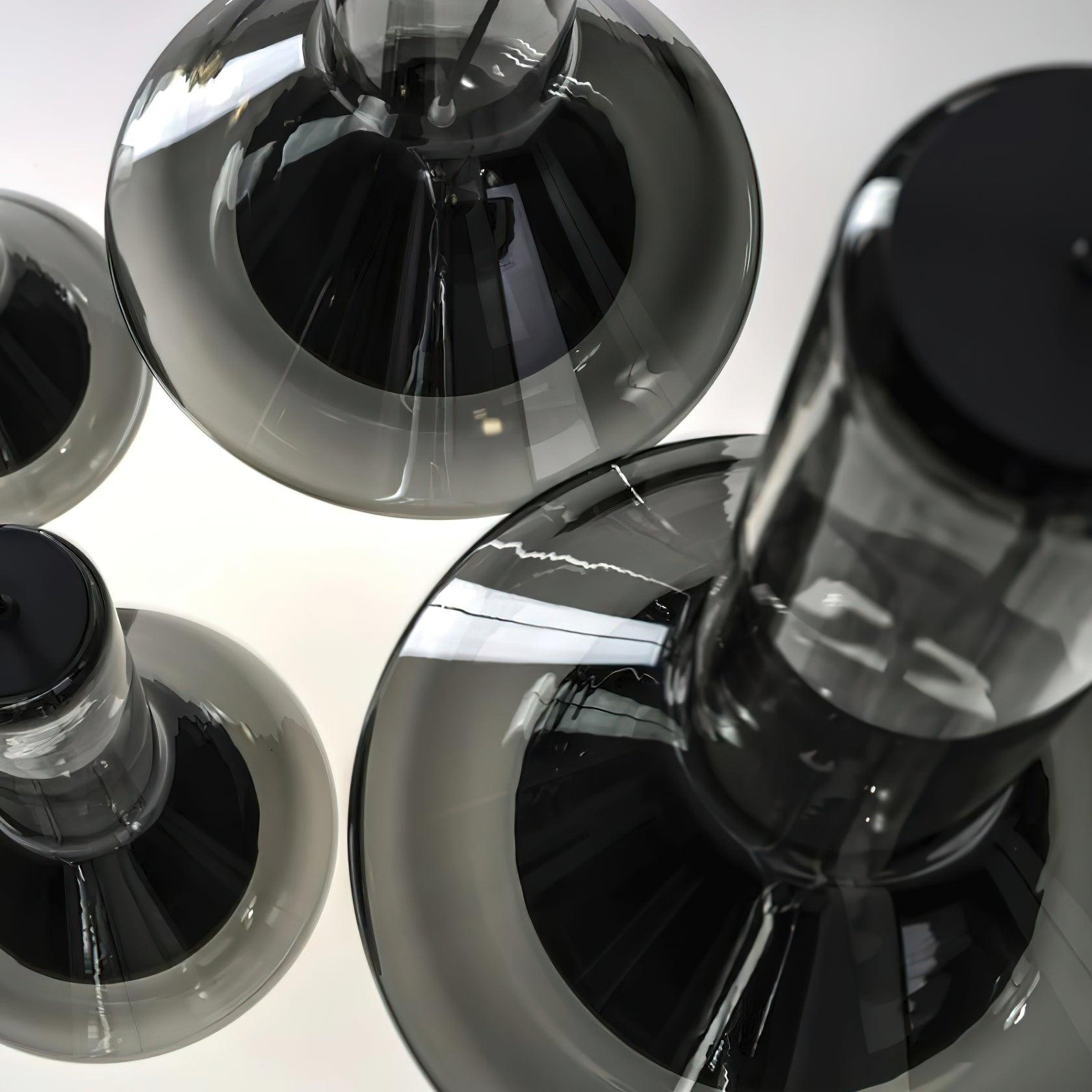 This "Swirl Chandelier" blends fresh and mysterious colors to become the focal point of any space with its unique design aesthetic. Made of high-quality transparent glass. the lamp creates a visual vortex effect with its pure clear light color and deep smoke gray. The elegant chimney shape design and the spiral color contrast inside not only provide a beautiful appearance. but also create a charming light and shadow effect when lit. Whether hung individually or arranged in groups. swirl chandeliers bring a modern and sophisticated touch to any home or commercial space.