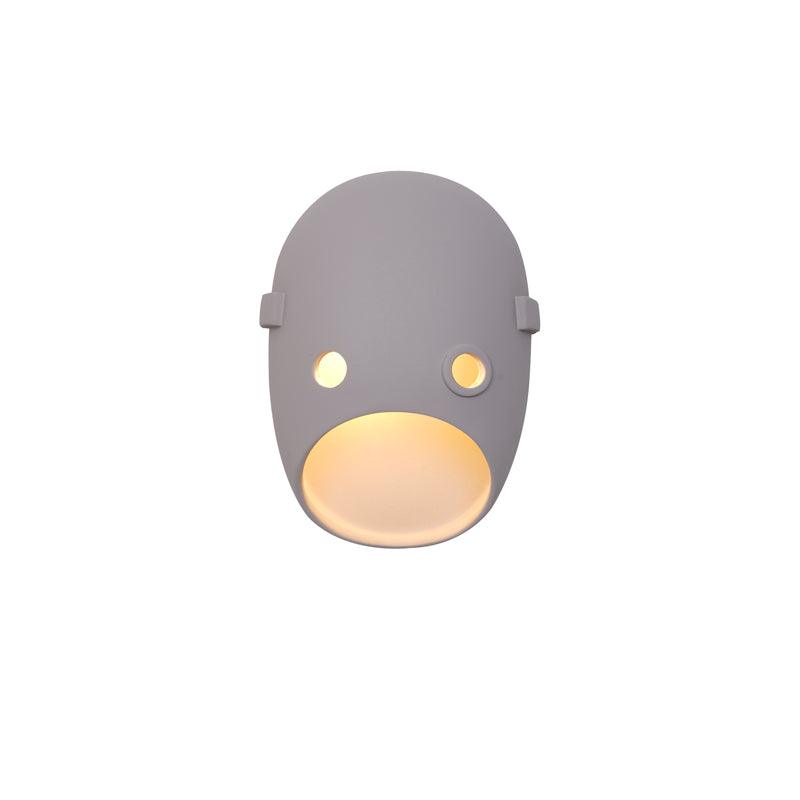 The mask is inspired by a clan of strong. captivating personalities. Their casted ceramic faces bring to light our fascination with secrets. family dynamics and intrigue. If seen together. as a splendid party. they brighten up the stage with their cool playfulness. Yet behind the lamps' composed façades a mischievous side seeps through and touches our imagination.