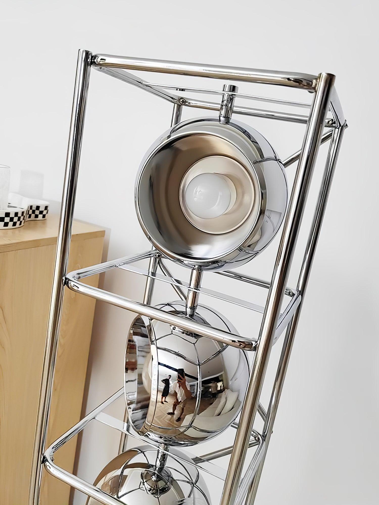 The Tower of Spheres Floor Lamp is a striking addition to any modern living space. combining sleek design with a touch of industrial charm. This lamp features a vertical array of chrome-finished rings. The alternating pattern of the rings creates a dynamic visual effect. while the glass globes emit a soft. diffused light. perfect for creating a warm and inviting atmosphere. Standing tall on a sturdy square base. this floor lamp is not only a source of light but also a statement piece. bringing a sculptural aesthetic to the contemporary home.