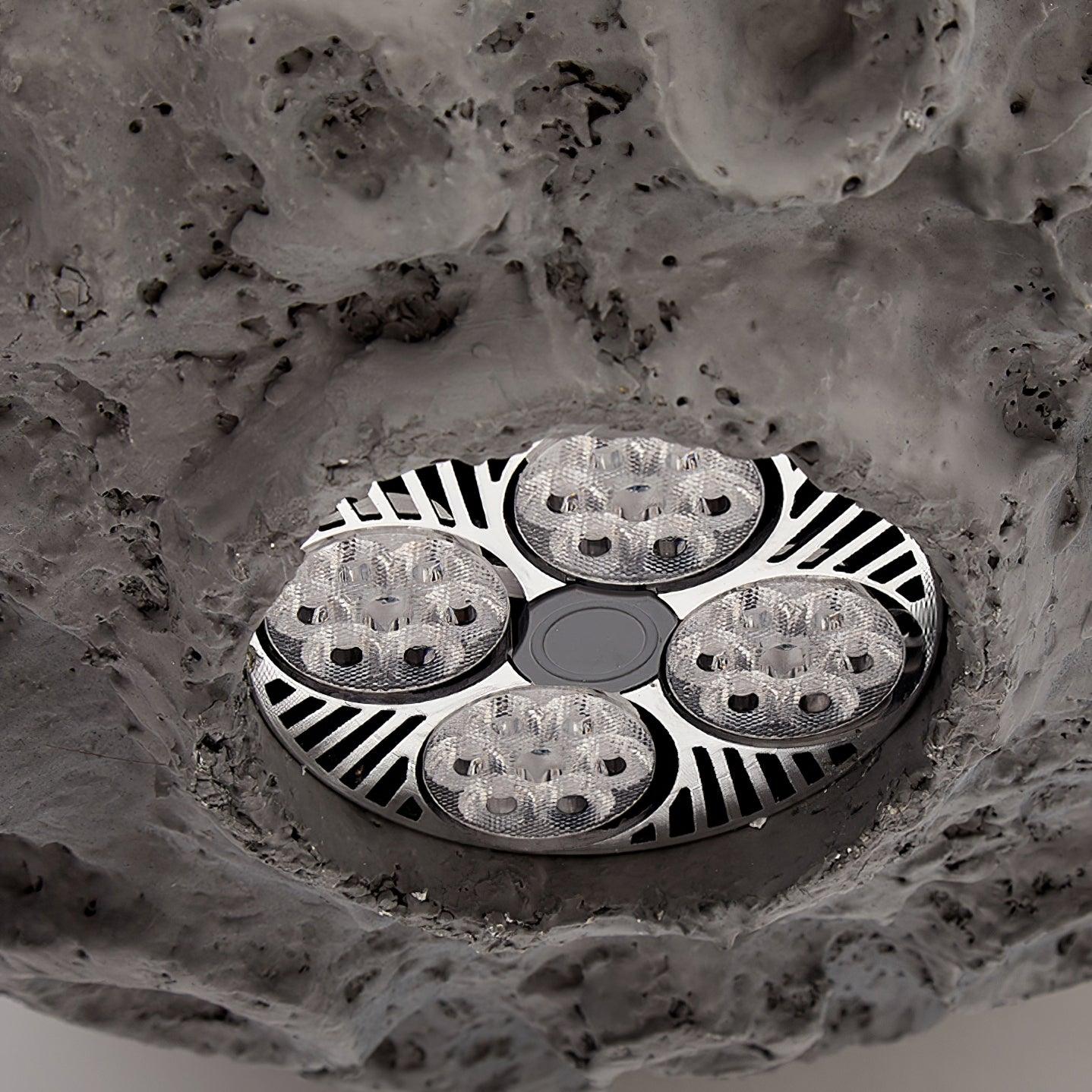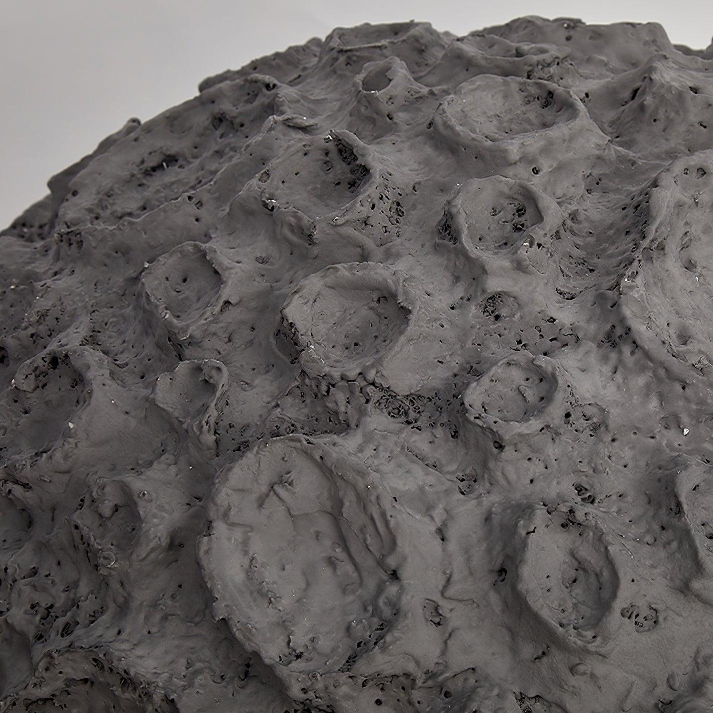 The shape of this pendant lamp refers to the shape of the Earth. Its "core". the light source. brings it to life. When it's on. we'll see a bright. light-filled planet. Its structure - grey. porous and irregular - symbolizes the earth - dry and cracked.