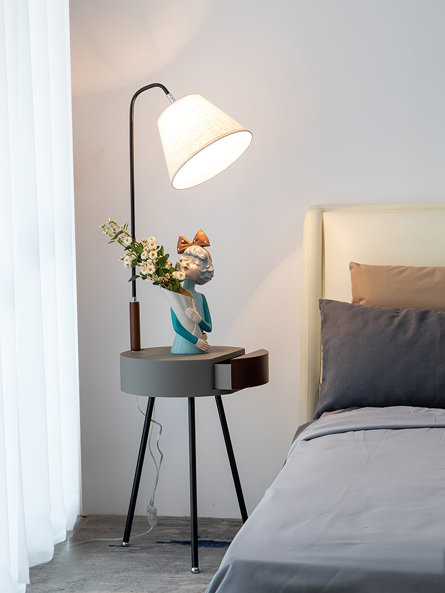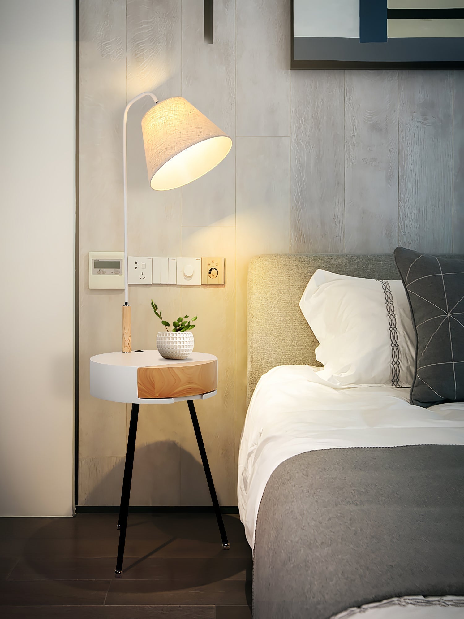 Enhance the modern ambiance of any space with our Tripod Fabric Floor Lamp. Available in white. grey. or black finishes. this sleek and stylish lamp features a wooden tripod base and a fabric lampshade. Elevate your home decor with this versatile and contemporary floor lamp.
