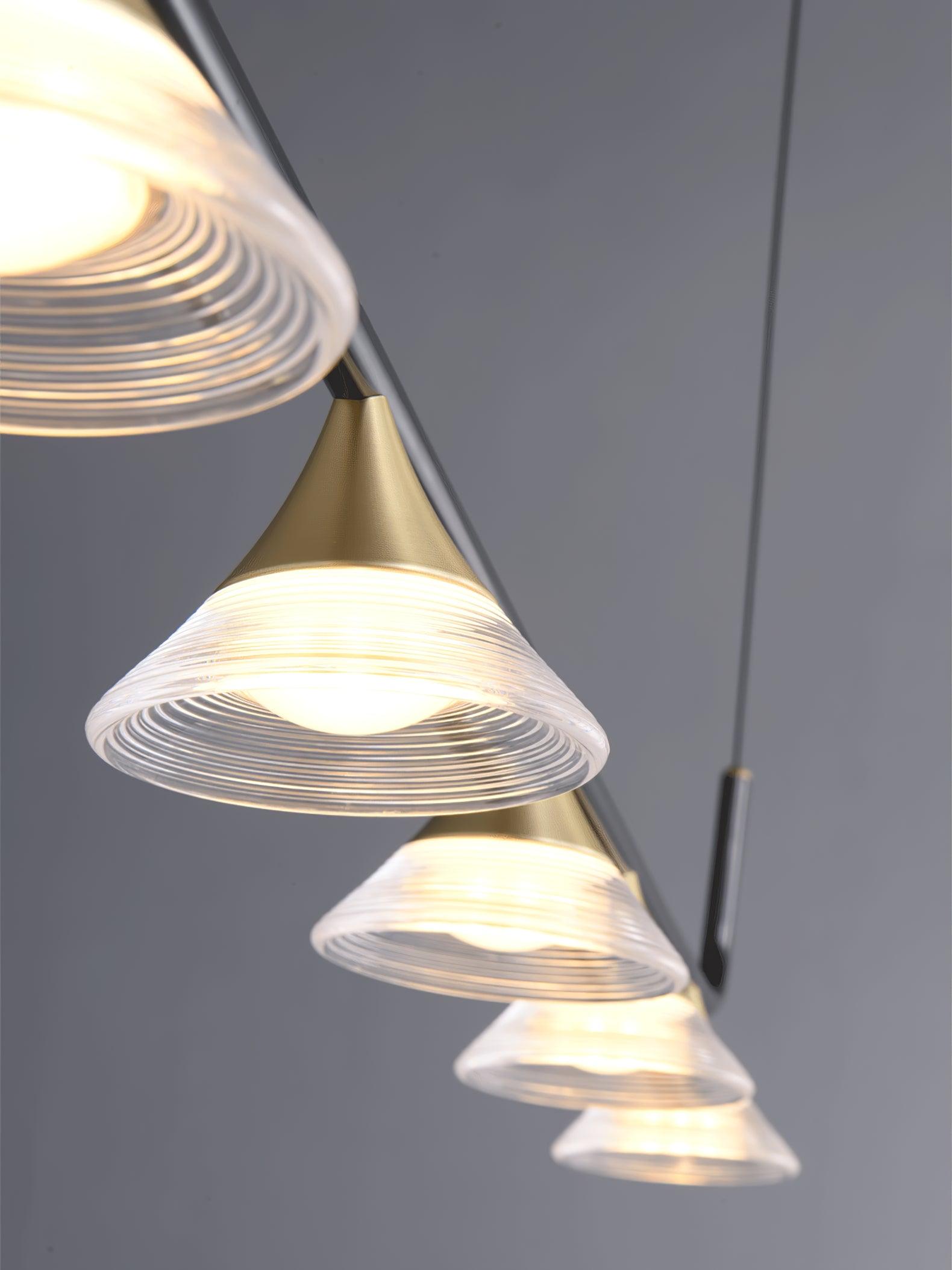 The Tristan Restaurant Chandelier is an elegant and timeless fixture for any dining space. Crafted from brass and acrylic. its classic design will blend with traditional and modern decor alike. Illuminate your dining room or living room with the perfect balance of style and sophistication.