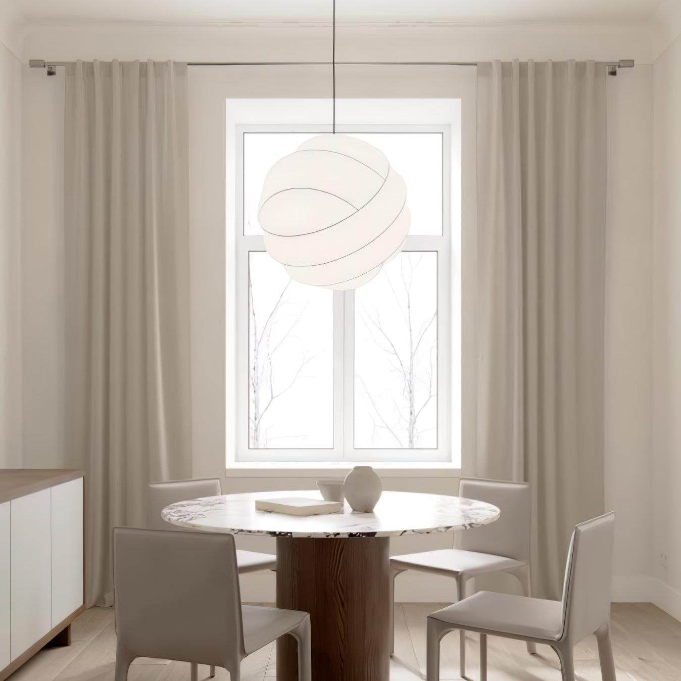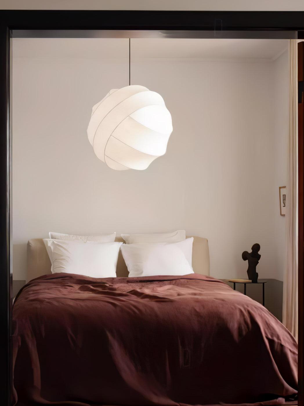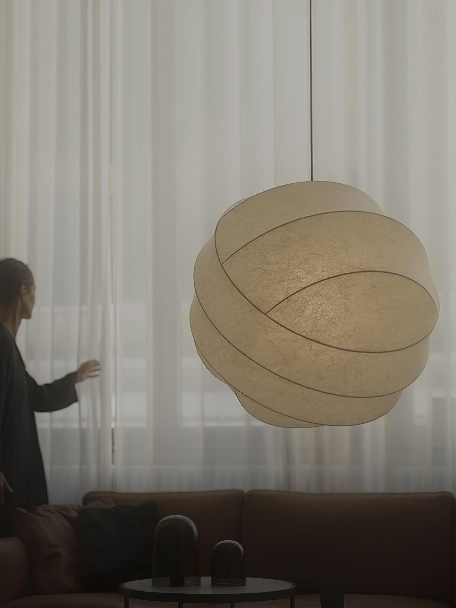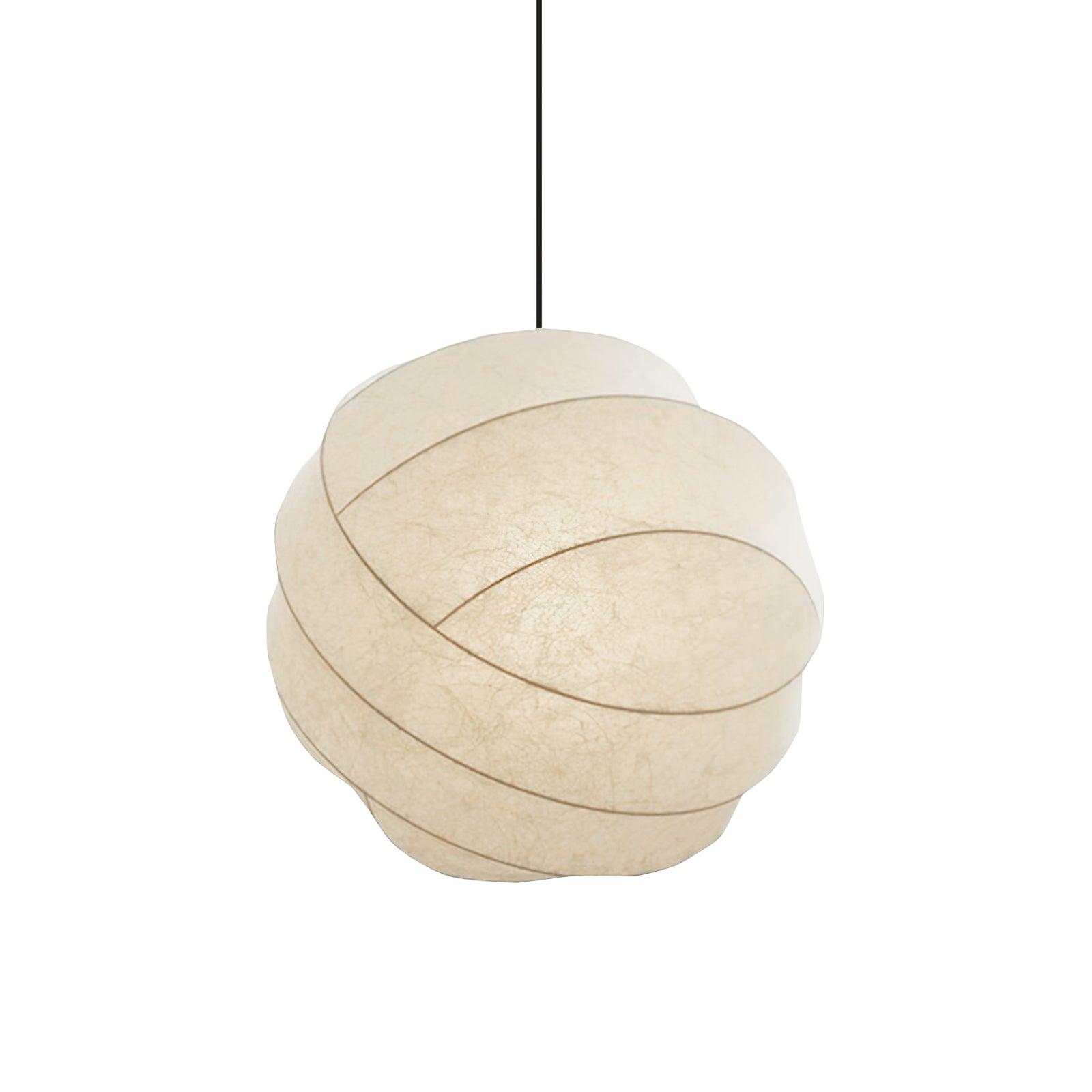 The Turner Pendant Lamp is an exquisite blend of astronomy. geometry. and craftsmanship. Its intricate yet delicate structure balances its precision orbital frame and its delicate fiber cocoon material. This unique and versatile hand-crafted lighting fixture is available in three sizes to suit any room's illumination needs.