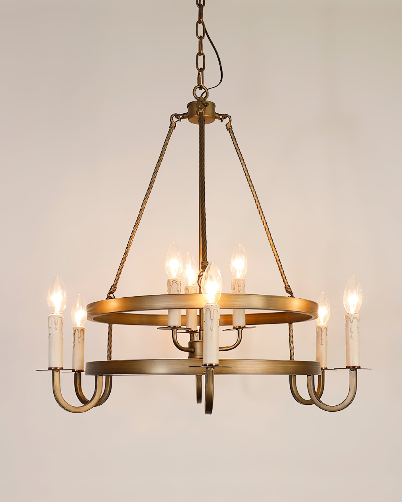 Introducing our Vintage Voyager Chandelier - the perfect fusion of tradition and modernity. The rough industrial aesthetic. circular layout. and warm lighting make it a perfect addition to any interior space. With its metal structure and retro chain suspension. it brings a touch of history and warmth to any room.